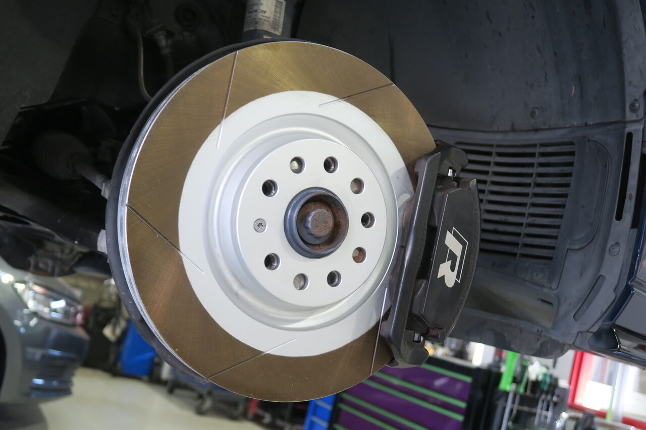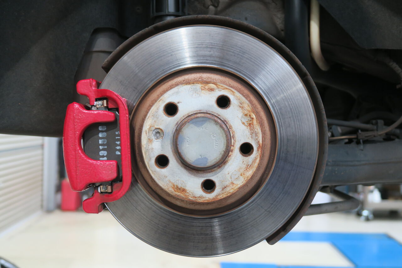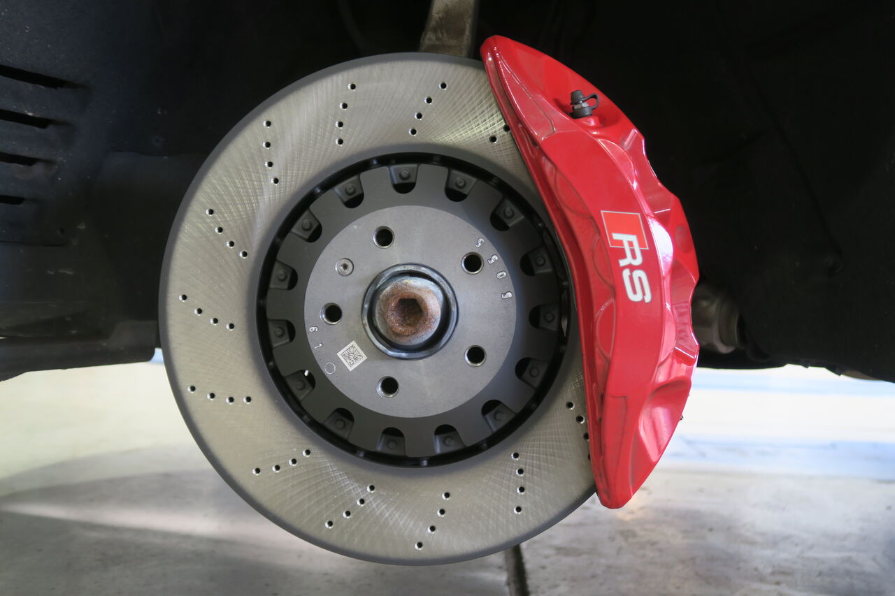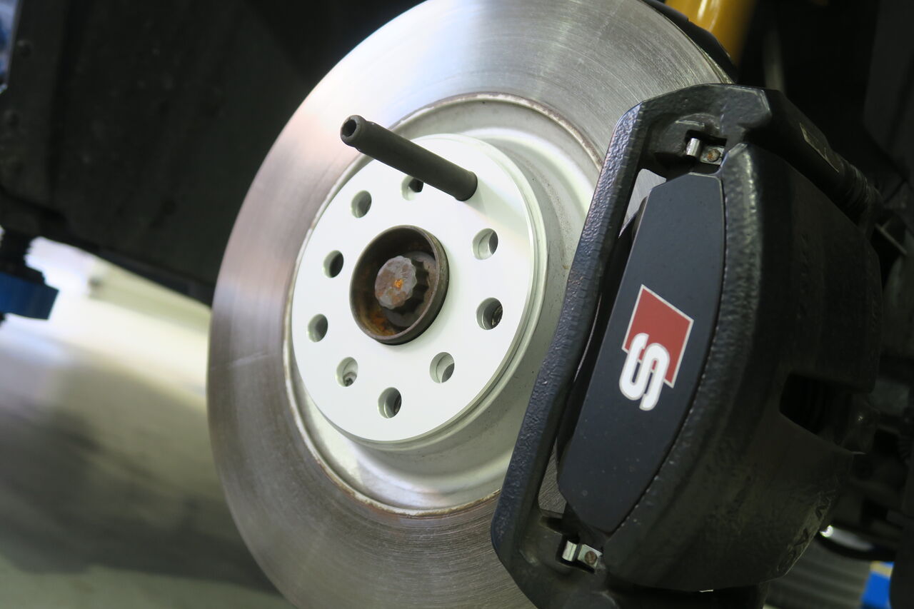 RS5(B9)のブレーキパッド&ローター交換でご来店いただきました。サーキット走行を見据えてブレーキパッドには「iSWEEP IS3000」をお選びいただきました。IS3000はロースチール材を採用したブレーキパッドでサーキット走行や峠の連続走行などブレーキローターが高温の状態を維持するようなシチュエーションで本領を発揮します。ブレーキローターも摩耗がありましたので純正品を使用して交換しました。合わせてブレーキフルードも耐熱性に優れる「iSWEEP RACING BF」に交換させていただきました。フルードは許容温度を超える熱を受けると沸騰し、ブレーキ性能を著しく低下させてしまうため走行条件に見合ったグレードの使用をオススメしております!