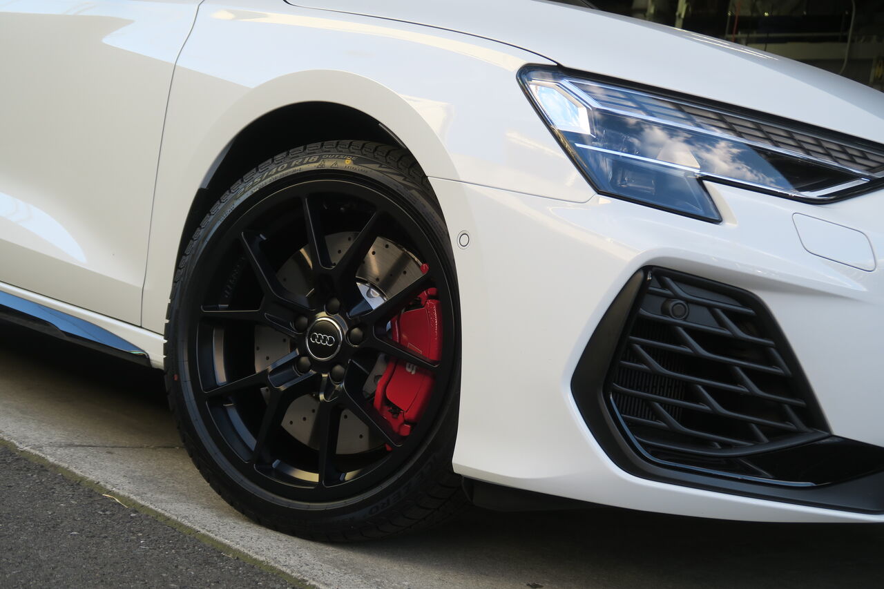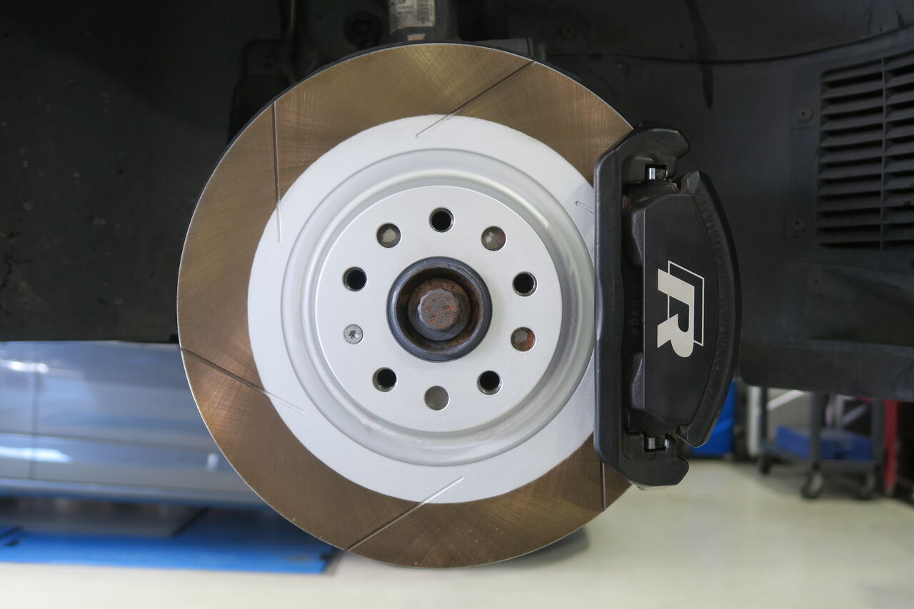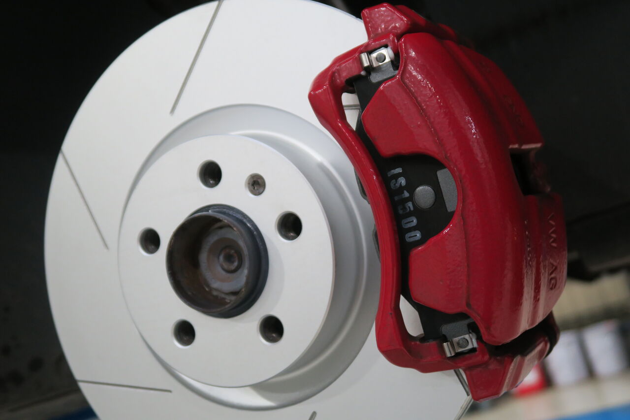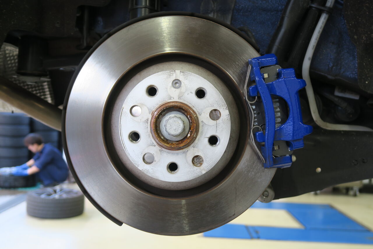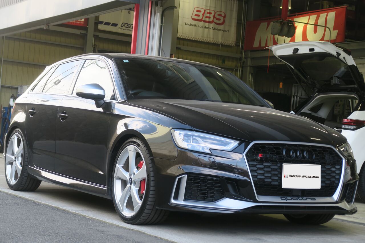 RS5(B9)のブレーキパッド&ローター交換でご来店いただきました。サーキット走行を見据えてブレーキパッドには「iSWEEP IS3000」をお選びいただきました。IS3000はロースチール材を採用したブレーキパッドでサーキット走行や峠の連続走行などブレーキローターが高温の状態を維持するようなシチュエーションで本領を発揮します。ブレーキローターも摩耗がありましたので純正品を使用して交換しました。合わせてブレーキフルードも耐熱性に優れる「iSWEEP RACING BF」に交換させていただきました。フルードは許容温度を超える熱を受けると沸騰し、ブレーキ性能を著しく低下させてしまうため走行条件に見合ったグレードの使用をオススメしております!
