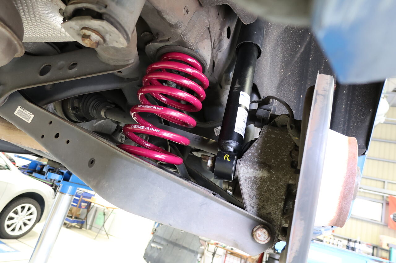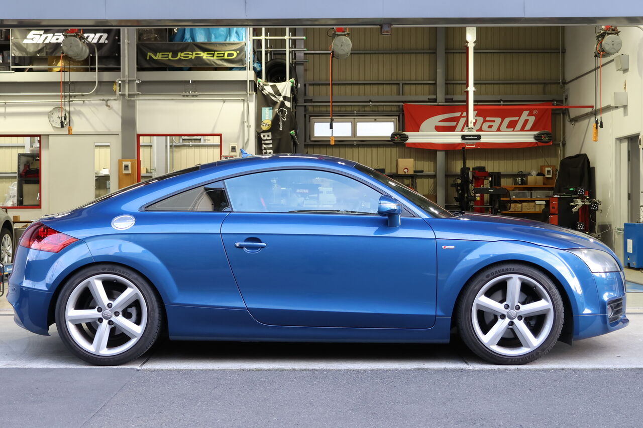 TT(8J) のサスペンションリフレッシュで「SACHS Performance PLUS」を装着しました。快適性を保ちながら走行性能の向上とリフレッシュを両立してスタイリッシュなフォルムを実現することができるコスパの高いサスペンションキットです。リフレッシュに合わせてフロントアッパーマウント、バンブラバーを新品に交換させていただきました。また、ホイールスペーサーの取り付けもご依頼いただきましたので実車にて測定を行い前後に10ミリのホイールスペーサーを装着しました。ローダウンするだけでも車の印象は大きく変わりますが合わせてホイールの出面を合わせることでバランスの取れたフォルムになりますので気になる方はお気軽にお問い合わせください!