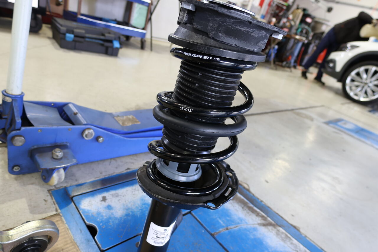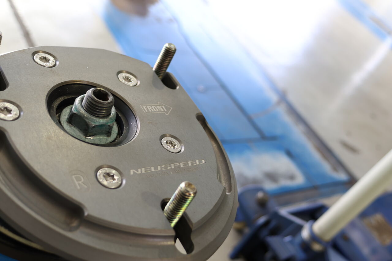 RSQ3(F3)に「BILSTEIN B16 Damp Tronic」を装着させていただきました。通常では車高調を導入する際に電子制御ダンパー付きの車両ですと機能を生かすことが出来ないことが多いですが、BILSTEIN B16 Damp Tronicは車高調でありながらも純正ダンパー同様に車載モニターから走行ステージやシーンに合わせた減衰特性への調整が可能です。今回車高は純正比前後約40ミリダウンに調整させていただきスポーツ性とSUVらしさを両立したフォルムに仕上がりました!今回合わせて「NEUSPEED Billet biAXIS Upper Strut Mount」を装着しました。純正サスペンションや純正アッパーマウントを使用するサスペンションにキャンバー調整を可能にするアッパーマウントになります。車両取り付け部のボルトがスライドすることで細かく調整できますので、アライメント調整の幅が広がります!気になる方はお気軽にお問い合わせください。