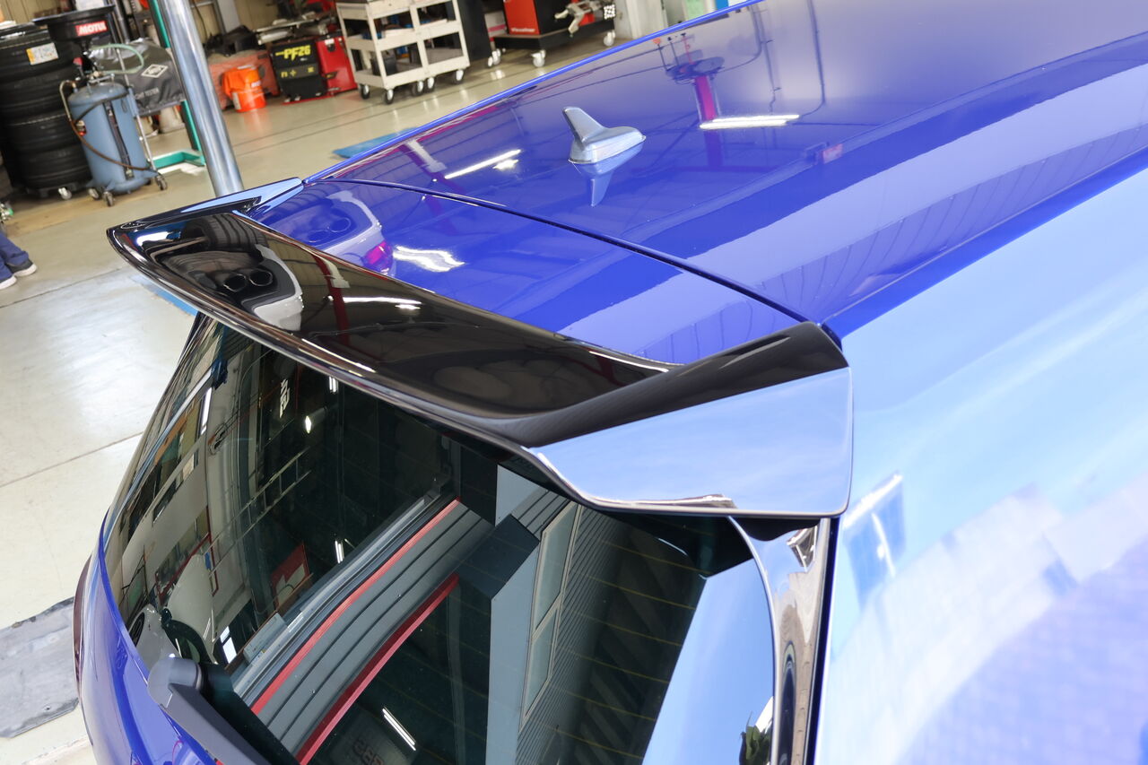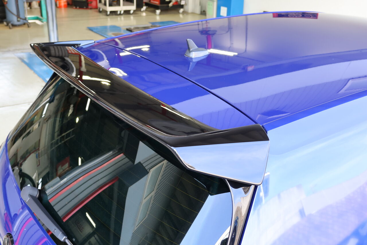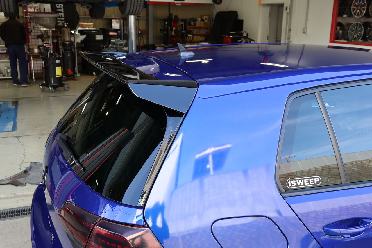 GOLF7.5 Rのヘッドライトプロテクションフィルム施工とiSWEEPルーフウイングエクステンションの取り付けでお預かりしました。フィルムに使用した「DIAMOND SWELL Protection FILM」は99%以上の高いUVカット効果により紫外線が原因のライト表面のひび割れを予防します。カラーは薄くスモークのかかったブラックヴァイオレットをお選びいただき自然ながらも深みのある印象に仕上がりました。iSWEEPルーフウイングエクステンションは純正ボディデザインのバランスを尊重しながらも、大きく張り出したスポイラーと翼端板がリアビュー&サイドビューにボリュームを与えスポーティーなシルエットを演出します!