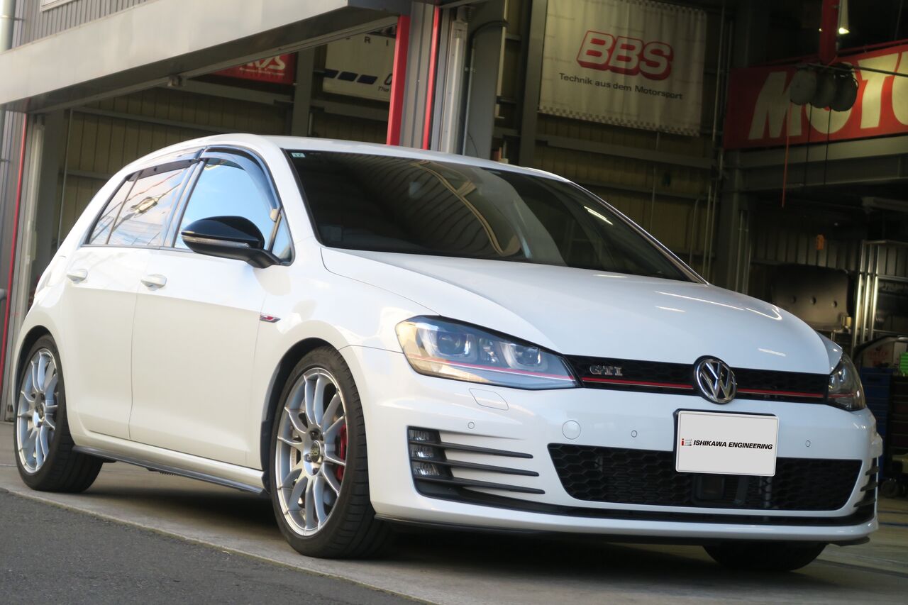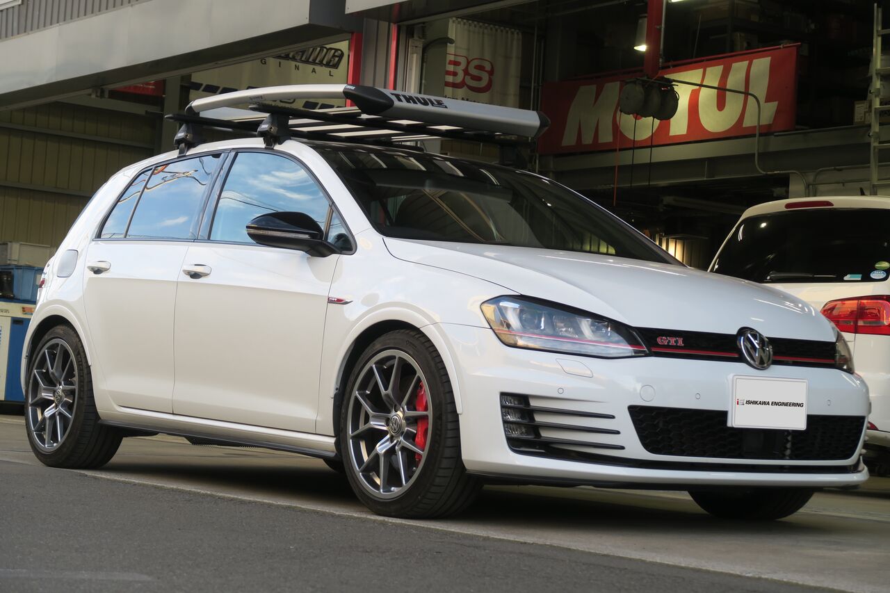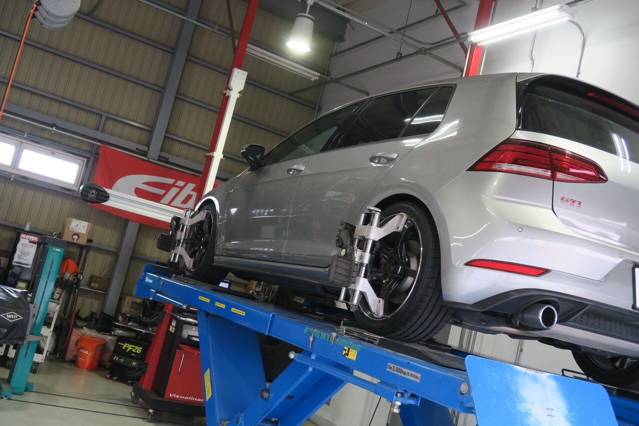 GOLF7 GTIの12ヶ月点検でご来店いただきました。定期的な点検により車両の状態を把握して必要箇所を事前に整備を行うことで良いコンディションを保つことが出来ます。点検でお車をリフトアップ・分解することで日常点検では発見できない不具合を見つけて思わぬトラブルを予防します!