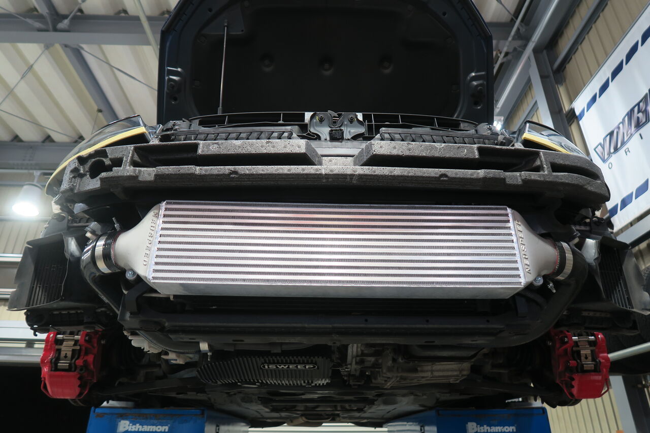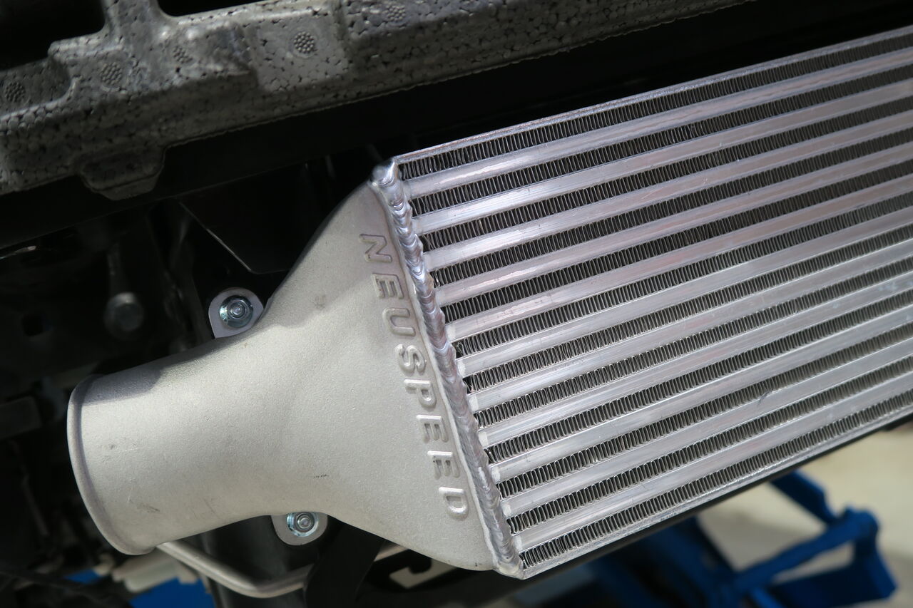 GOLF7.5 Rに「NEUSPEED Front Mount Intercooler Kit」を装着させていただきました。ECUチューニングを行っている車両の場合、ターボにより通常よりも高圧で過給された吸入空気は圧縮熱を帯びて高温になってしまうためより効率的な冷却が必要となります。NEUSPEED Front Mount Intercooler Kitの装着により純正インタークーラーよりも優れた冷却性能とエアフロー効率の向上によって吸入空気の充填効率を大幅に高めることが可能となります!またラジエーターグリルからインタークーラーが見えるため存在感が抜群です。今回同時に「NEUSPEED Front Upper Strut Tie-Bar」も装着させていただきシャーシ剛性も向上することでより楽しいお車に変化します!