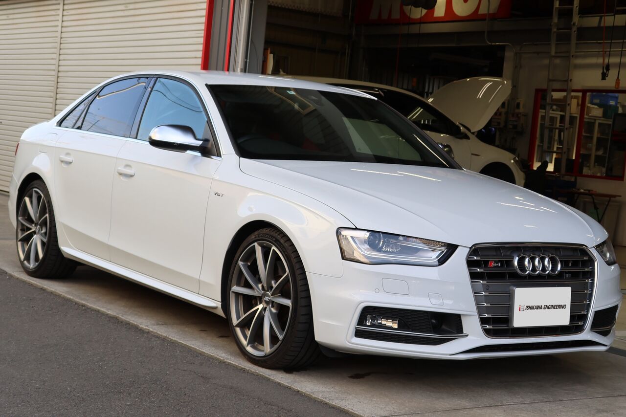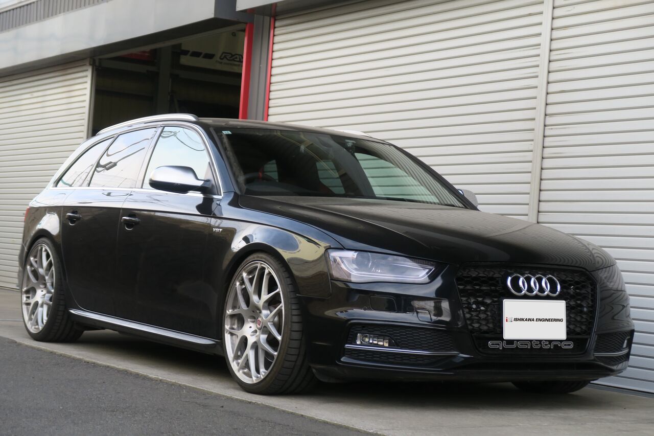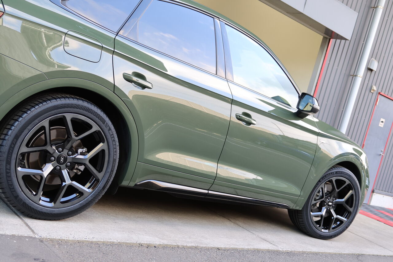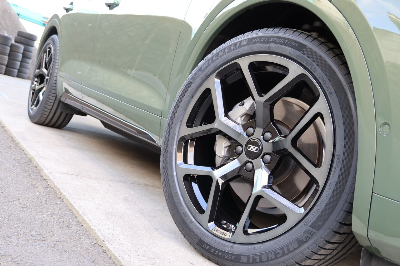 Q5 (FY) 40TDIに「iSWEEP Upgrade Spring」と「iSWEEP Rear Stabilizer」を装着させていただきました。車高のダウン量は純正比フロント約30mm、リア約40mmダウンとなりました。iSWEEP Upgrade Springは車高が下がるだけでなく乗り心地も純正に比べて突き上げ感が少ないため快適にドライブを楽しんでいただけます。同時に装着させていただいたiSWEEP Rear Stabilizerはアップグレードスプリングと組み合わせることで、コンフォート性を損なうことなく高速走行やワインディング走行時の安定性を向上させます。純正スプリングと組わせることも可能です!合わせてホイールに「NEUSPEED RSe103 20x9.0 +35」をお選びいただき、ワイルドでありながらスタイリッシュさを併せ持った2×5本のスポークが車体のデザインとのマッチングも良く足元を引き締めます。タイヤは快適性と強度のバランスに配慮したSUV専用設計の「MICHELIN Pilot Sport 4 SUV 255/45R20」を組み合わせました。