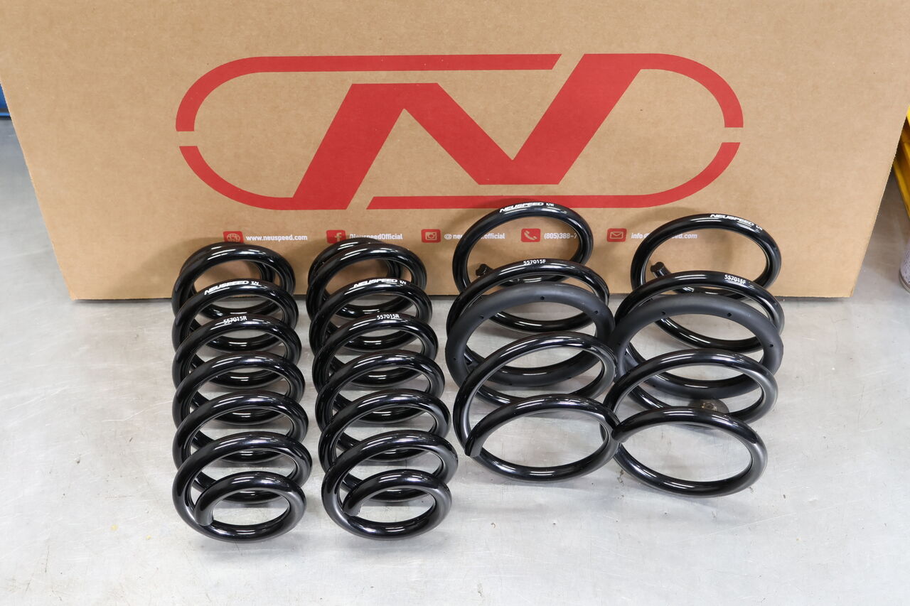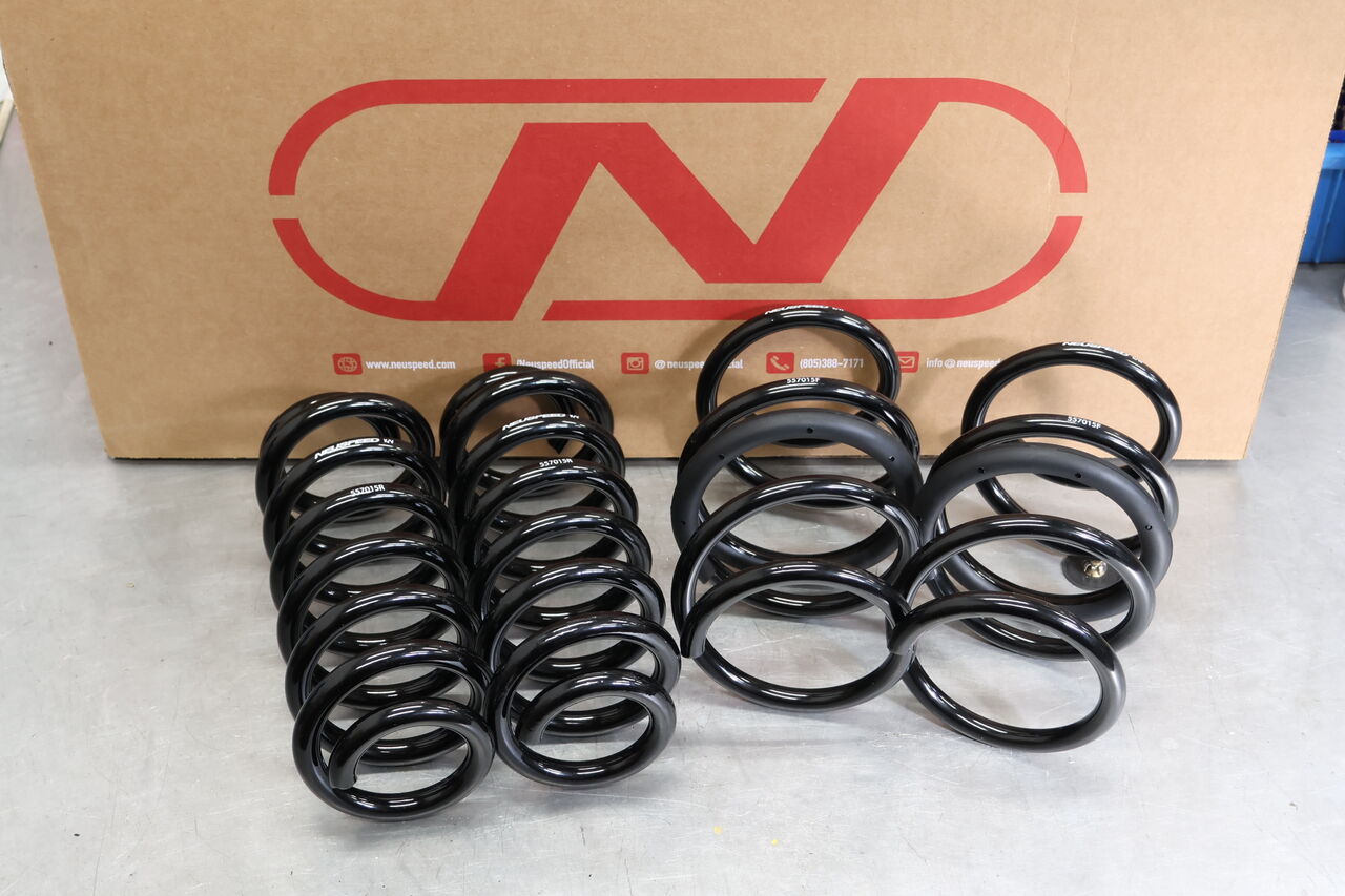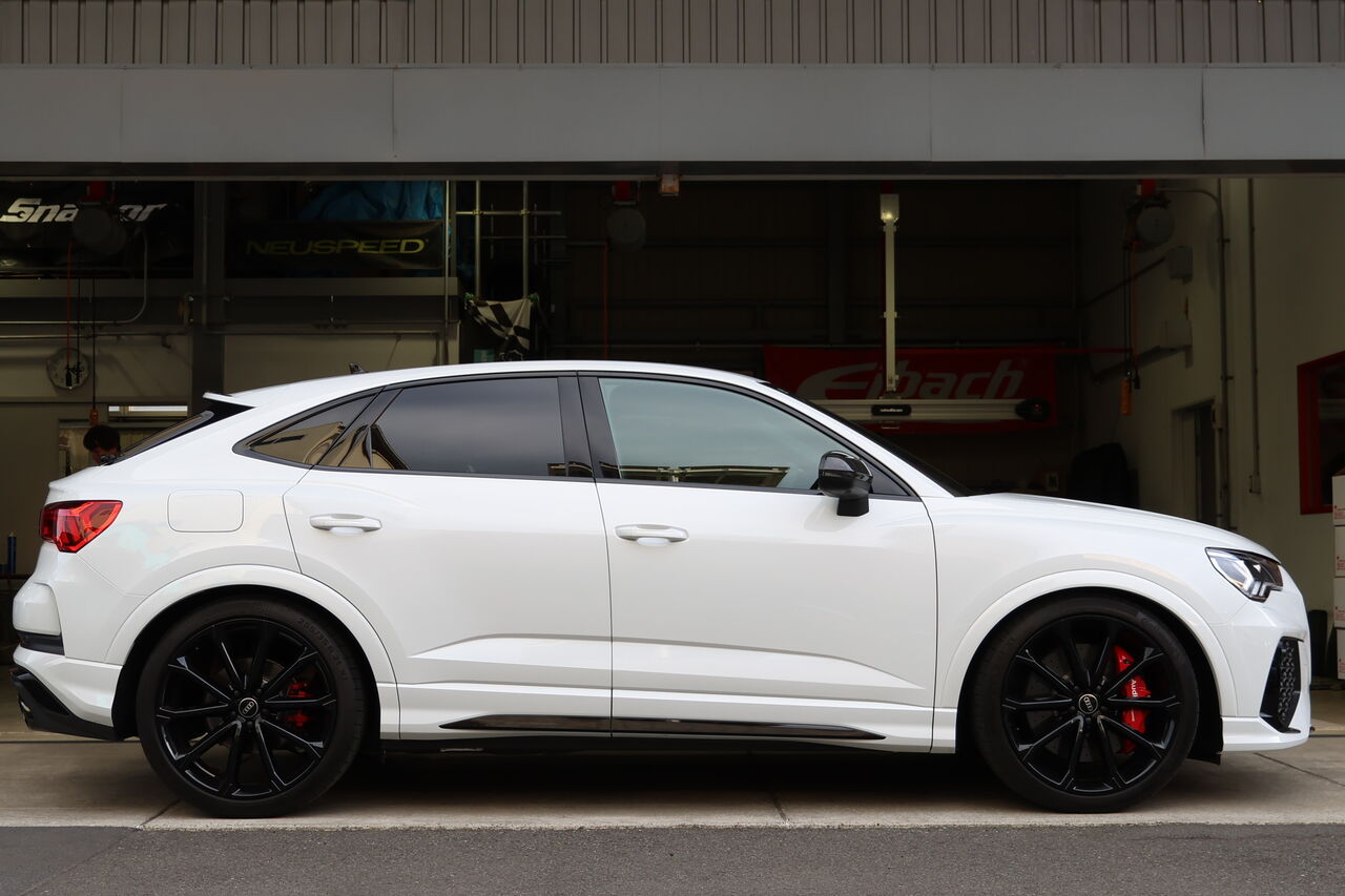 RS3(8.5Y) Sportbackに「NEUSPEED Sport Spring」を装着させていただきました。ダウン量は前後約20ミリとなりました。純正車高では腰高な印象がありますが適度にローダウンされることで車全体が引き締まった印象に変わります。また、 不当ピッチのプログレッシブ特性のスプリングにより乗り心地としっかりとしたハンドリングの両立が可能です!ローダウンに合わせてホイールスペーサーの取り付けもご依頼いただきましたのでお客様の好みに合わせてサイズを選定させていただき前後10ミリのホイールスペーサーを装着しました。突き出しハブ付きを使用することで、ホイールと車体側ハブとのセンターズレを防ぎ、ハンドルや車体の振動を防止しますので安心してご使用いただけます!気になる方はお気軽にお問い合わせください。