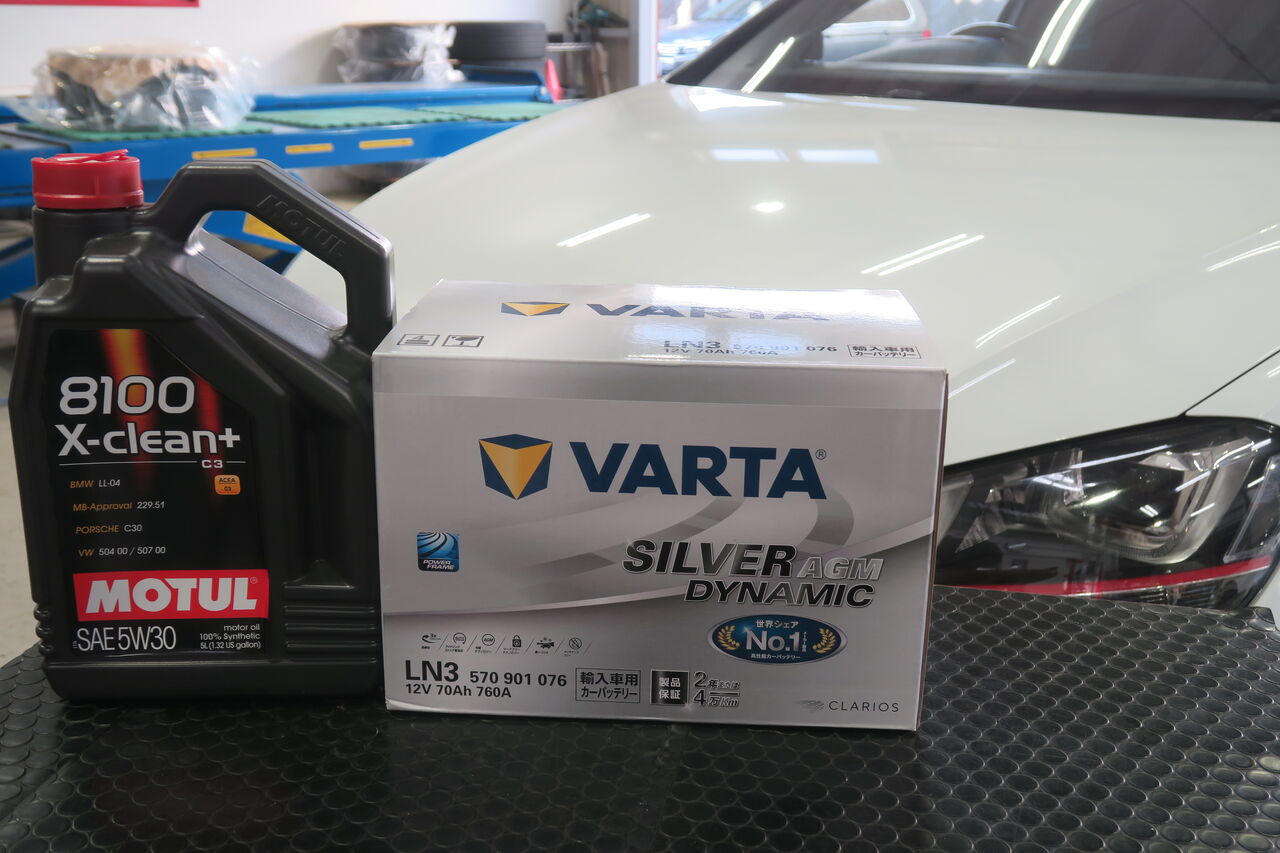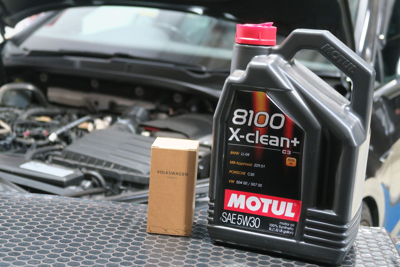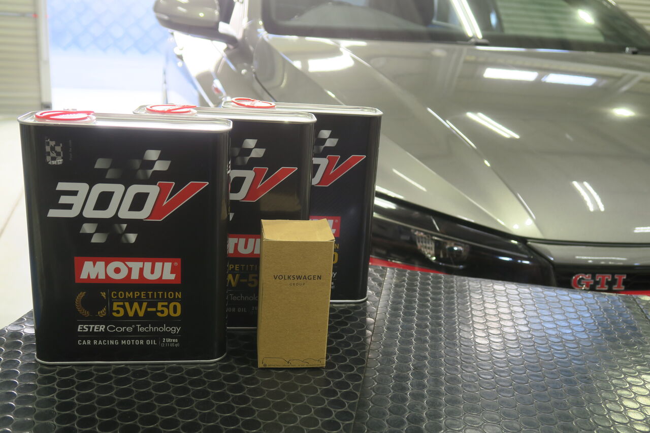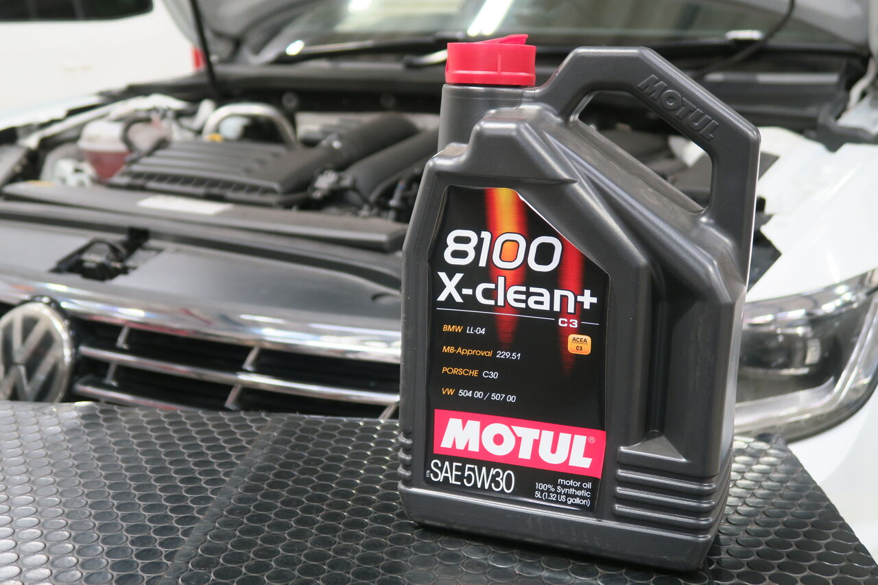 GOLF7 GTIのエンジンオイル交換でご来店いただきました。エンジンオイルはVWのアプルーバルを取得している100%化学合成オイル「MOTUL 8100 X-CLEAN+ 5W30」を使用しております。エンジンオイル交換は手軽にできるメンテナンスの一つです。当店ではMOTUL、Moty'sの高性能オイルを取り揃えておりますのでオイルのお悩みはぜひ当店にご相談ください!