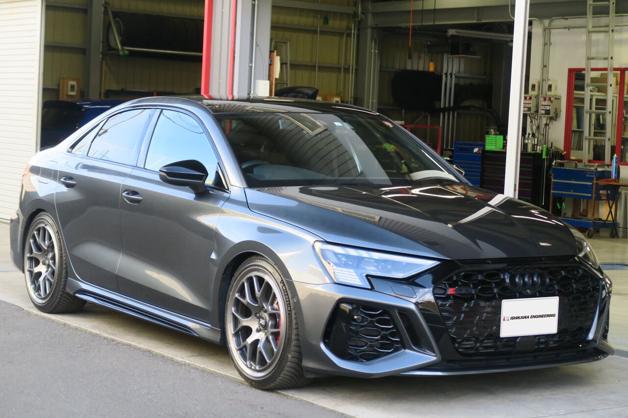 RS3(8V) SportbackにNEUSPEED RSe10 18x8.5 +45 Satin Black + HANKOOK S1 evo3 235/40R18の組み合わせで装着させていただきました。18インチでありながらRS3純正8potブレーキキャリパーを逃がしてクリアランスの確保が可能なホイールでTPMSの装着も問題無くできます。サテンブラックのホイールにすることで車両全体の統一感が出て、引き締まった印象になりました!今回組み合わせたタイヤの「HANKOOK Ventus S1 evo3 235/40R18」はハンコックタイヤのフラッグシップモデルとなります。ドライ路面での性能はもちろんウェット路面でも安定した走行性能を発揮するタイヤですので安心してご使用いただけます!ie_staff_blog at 18:00|Permalink│