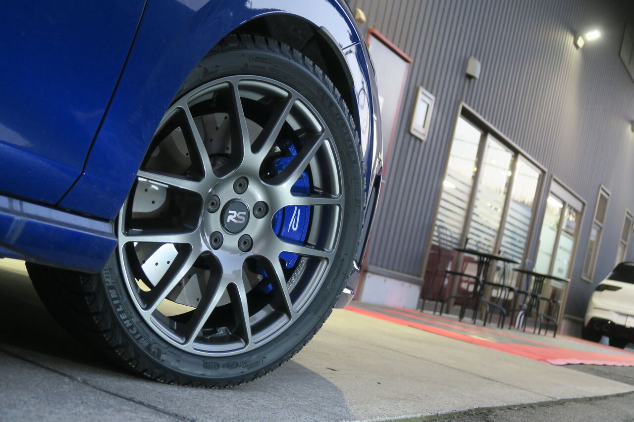 GOLF8.5 Variant Rの冬支度としてホイール&スタッドレスタイヤの装着でご来店いただきました。ホイールには「NEUSPEED RSe12 18×7.5J +50 ガンメタリック」をお選びいただきました。軽量化と高剛性化を両立した2×6本スポークデザインはGOLF8.5のスタイリッシュなエクステリアとの相性も良くスポーティーな雰囲気に仕上がりました。タイヤにはMICHELINのウィンタータイヤ「X-ICE SNOW 225/40R18」を装着しました。欧州のウィンタータイヤが得意とする雪上性能はもちろん、剛性の異なる二種類のコンパウンドが形成する表面の細かな凹凸が氷上でのグリップにも効果を発揮します!