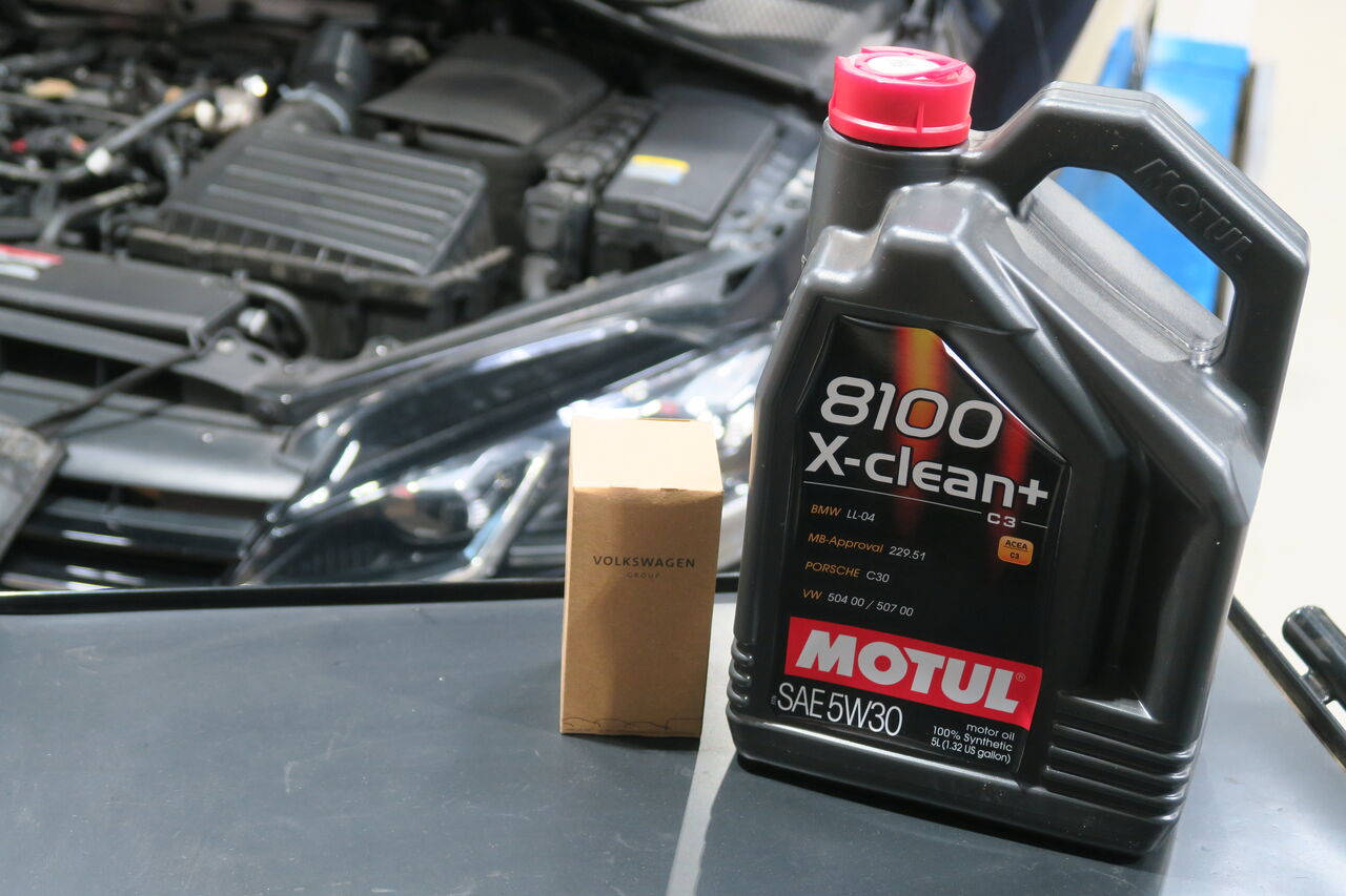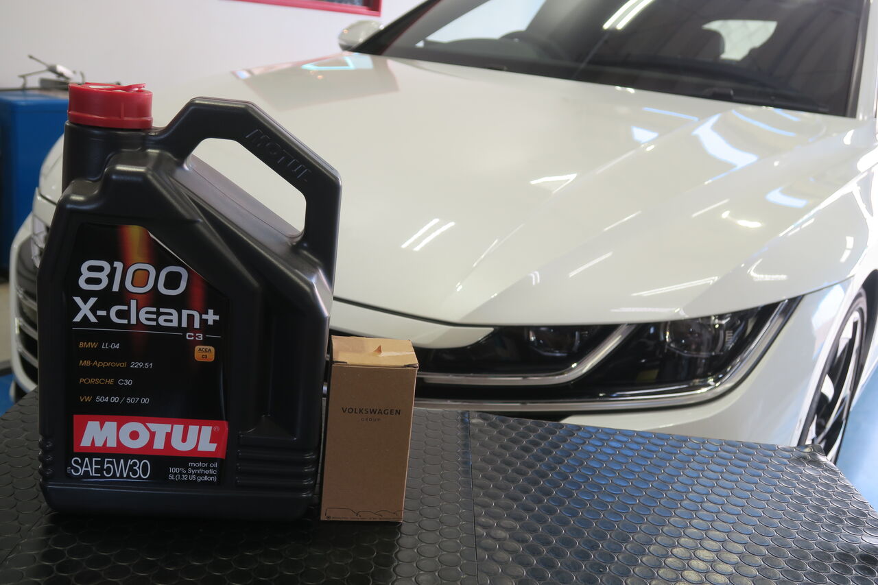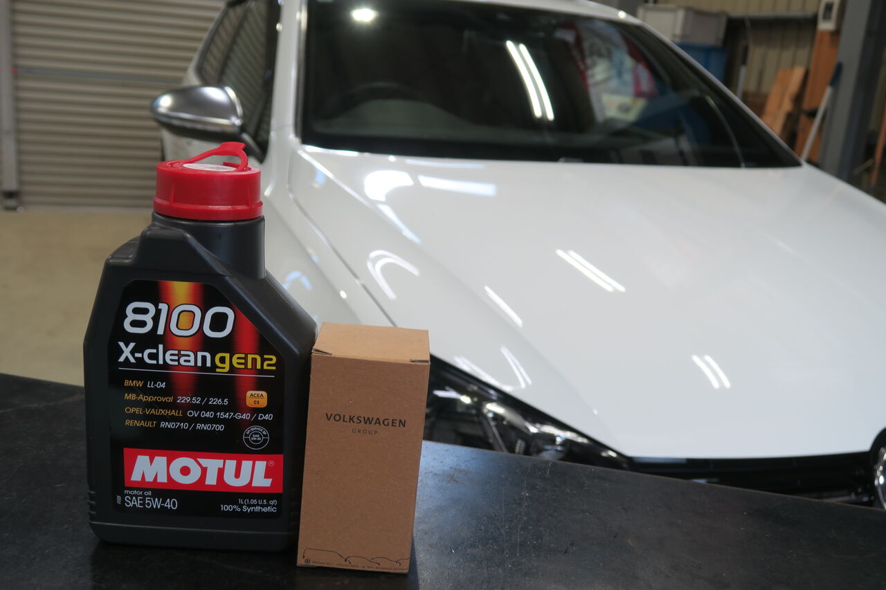 POLO(AW) 1.0 TSIのエンジンオイルとバッテリー交換でご来店いただきました。エンジンオイルには「MOTUL 8100 X-CLEAN+ 5W-30」を使用し同時にオイルフィルターも交換させていただきました。エンジンオイルをろ過するフィルターは長期の使用により目詰まりを起こしてしまうため、当店ではオイル交換2回につき1回の交換を推奨しています。バッテリーはアイドリングストップや充電制御に対応する「VARTA AGM Battery SILVER DYNAMIC」を使用させて頂きました。燃費向上のために設定されている充電制御はバッテリーに大きな負担を掛かるのでそれに対応した高耐久バッテリーが必要となります!