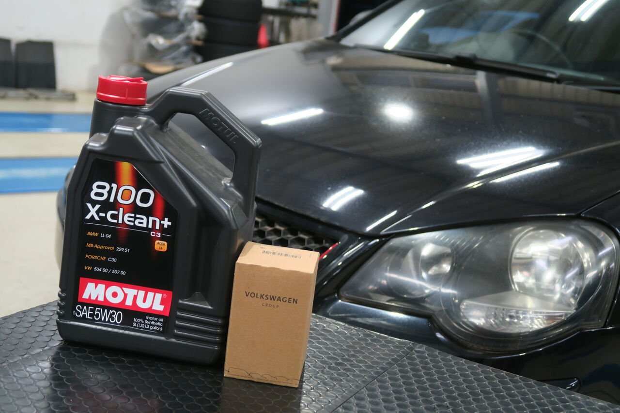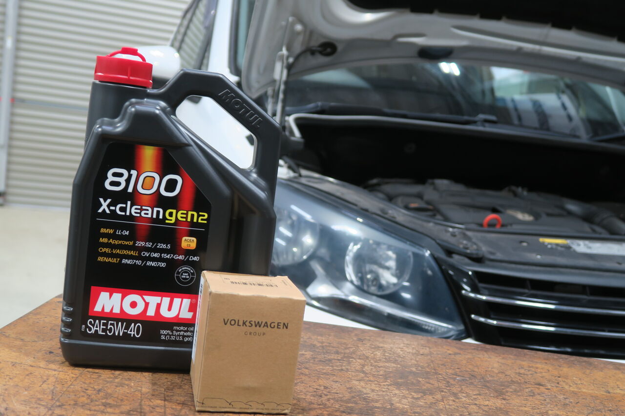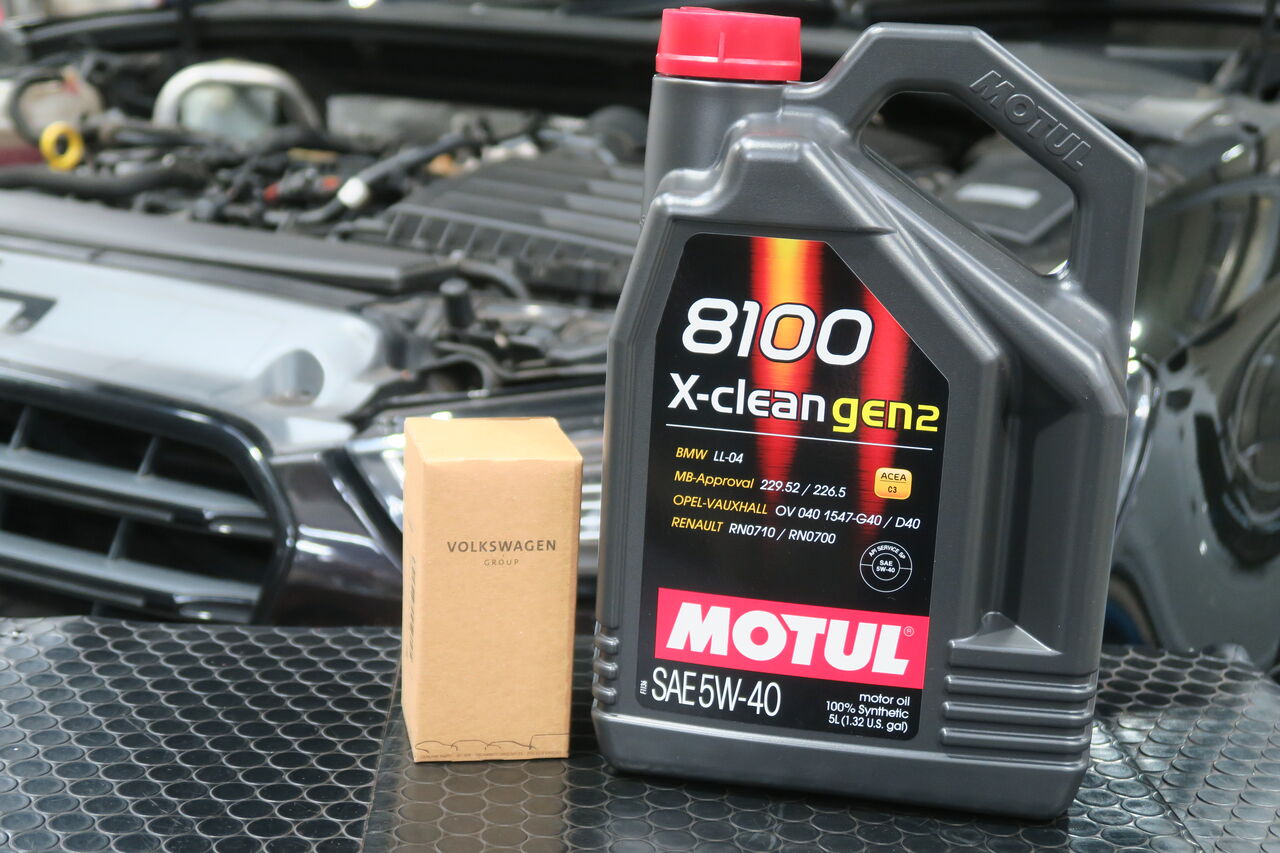 POLO(AW) 1.0 TSIのエンジンオイルとバッテリー交換でご来店いただきました。エンジンオイルには「MOTUL 8100 X-CLEAN+ 5W-30」を使用し同時にオイルフィルターも交換させていただきました。エンジンオイルをろ過するフィルターは長期の使用により目詰まりを起こしてしまうため、当店ではオイル交換2回につき1回の交換を推奨しています。バッテリーはアイドリングストップや充電制御に対応する「VARTA AGM Battery SILVER DYNAMIC」を使用させて頂きました。燃費向上のために設定されている充電制御はバッテリーに大きな負担を掛かるのでそれに対応した高耐久バッテリーが必要となります!