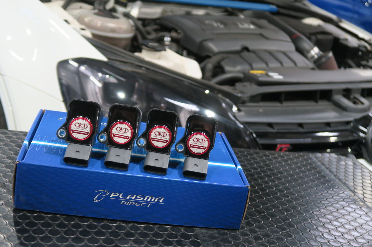 GOLF7 Rに「OKADAPROJECTS PlasmaDirect」を取り付けさせていただきました。Plasma Directは通常1回のスパークを3回発生させ、且つ2次電流値を純正コイルの約2倍にまで増大させることで燃焼効率を促し、エンジンは安定した高い爆発を行い続けます。結果、トルクや出力、レスポンスが向上し安定した爆発の為に振動も軽減します。リフレッシュとしての交換はもちろん、新車の状態から交換することで燃焼効率の向上により燃焼室をキレイに保ちエンジンコンディションの維持に貢献します!