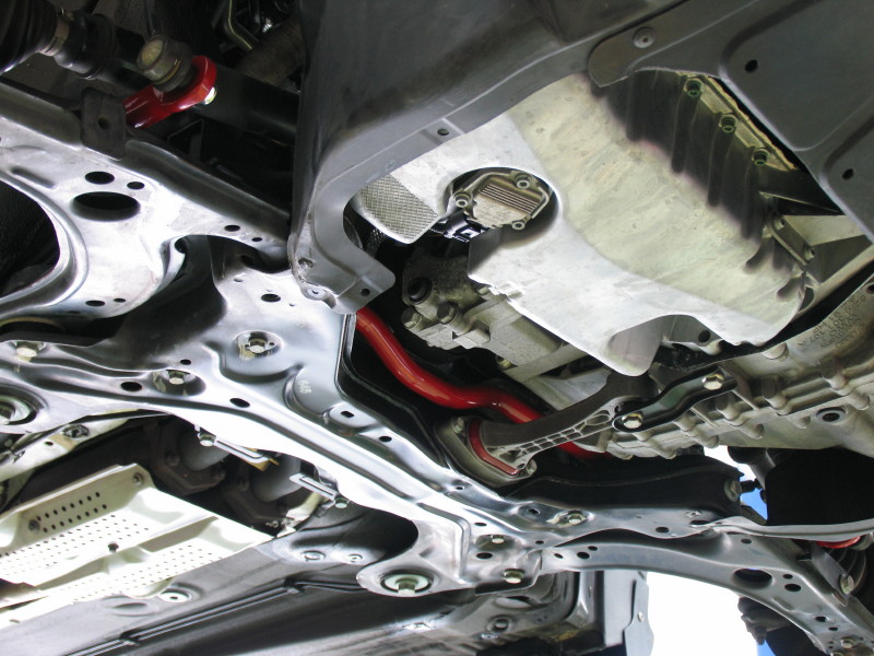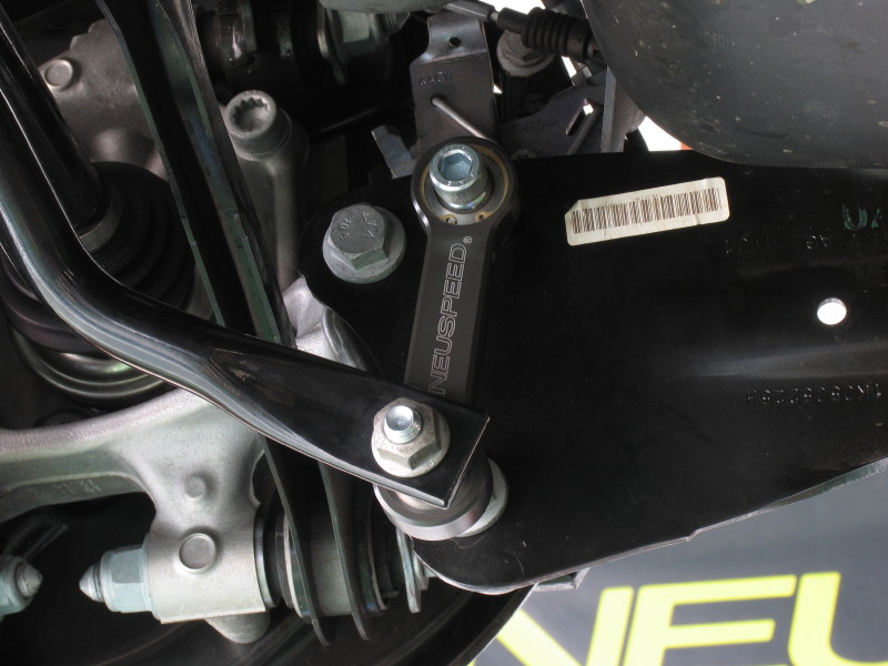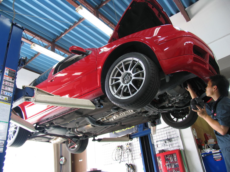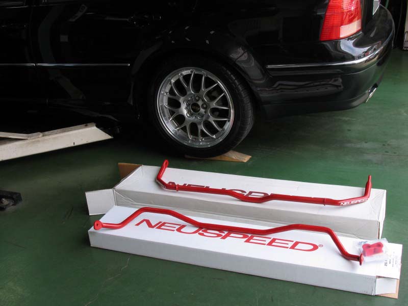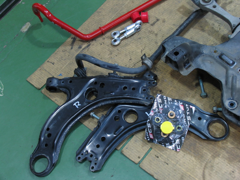 NEUSPEED スタビライザーを前後共に純正と交換します。そしてフロントにはNEUSPEED アッパータワーバーも装着します。 フロントのスタビライザーを交換するにはサブフレームを降ろす必要があるので、ちょっと時間のかかる作業になってしまいます。 その作業のついでにエンジントルクロッドブッシュもNEUSPEED製のウレタン強化タイプに変更しました。
