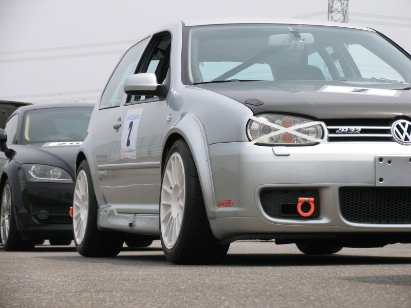 とりあえず、試作モデルなのでバンパーごと被るオーバーフェンダーです。レースのために作ったので、目的は達成! 思惑通りコーナーリングスピードが格段に速くなり楽になりました。 Golf Cupの会場で評判がよく、3台分もオーダーをもらいました。サーキットを走る人には魅力的なパーツですが、サーキットユーザー以外の方いかがでしょうか? 欲しいなと思う方、拍手を入れて下さい! その数を参考に製品化するか決めようかなと・・・。製品化する場合は、バンパー部分と分けて2ピース仕様にしようと思っています。