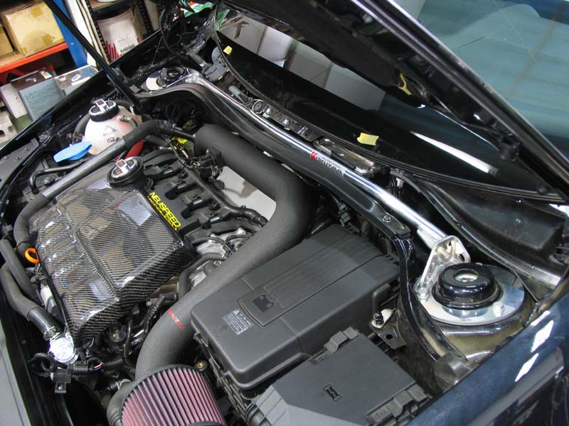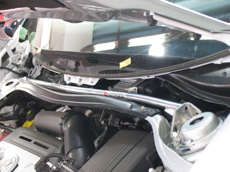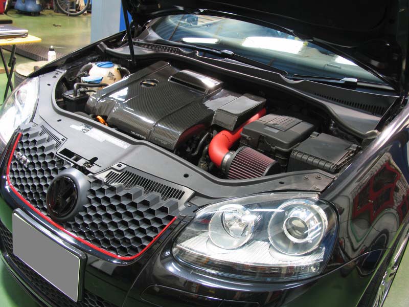 ※アッパータワーバーは、GOLF4 R32との共通化により、エンジンカバーの一部をカットして装着しています。