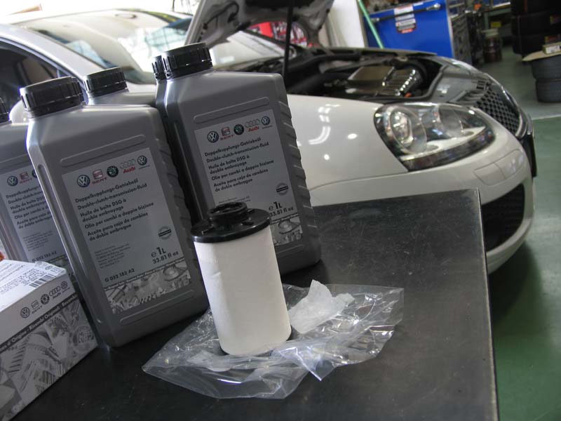 GOLF5 GTI のDSGオイルとフィルター交換で入庫です。 走行距離は約60,000㎞で、フィルターは内部のスラッジなどで真っ黒です。やはり定期交換時期よりも早めに交換したほうがいいですね。