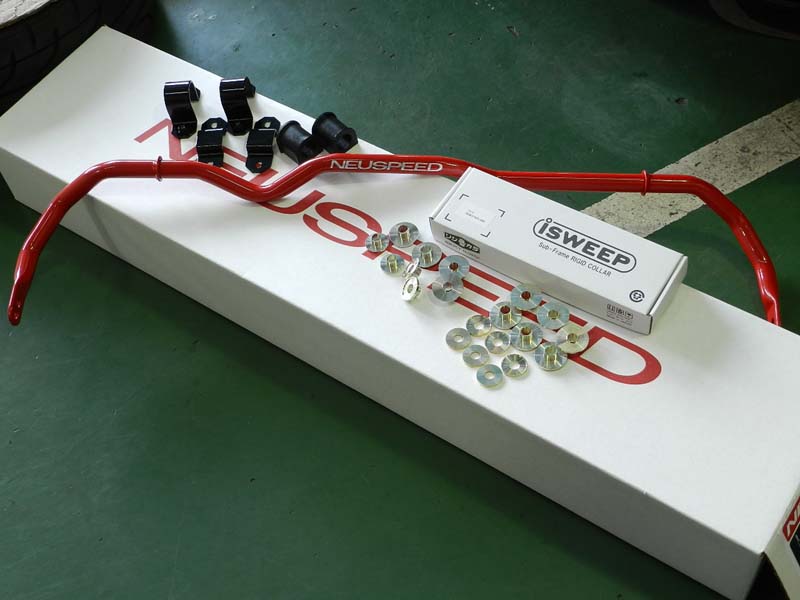 GOLF6 GTIへiSWEEPリジットカラーを前後と、NEUSPEED Fr Sway Bar25mmを取り付けました。リジカラの効果は繰り返しの説明にまりますが、フロント側に取り付けるとステアリングの操舵性が非常に良くなり、リア側に取り付けると後輪の追従性が良くなります。今回はフロントのリジカラとSway Barを同時に取り付けたので、コーナリング時や高速走行時の操作性、安定性が向上し、より一層ステアリングの反応が分かりやすくなりました。