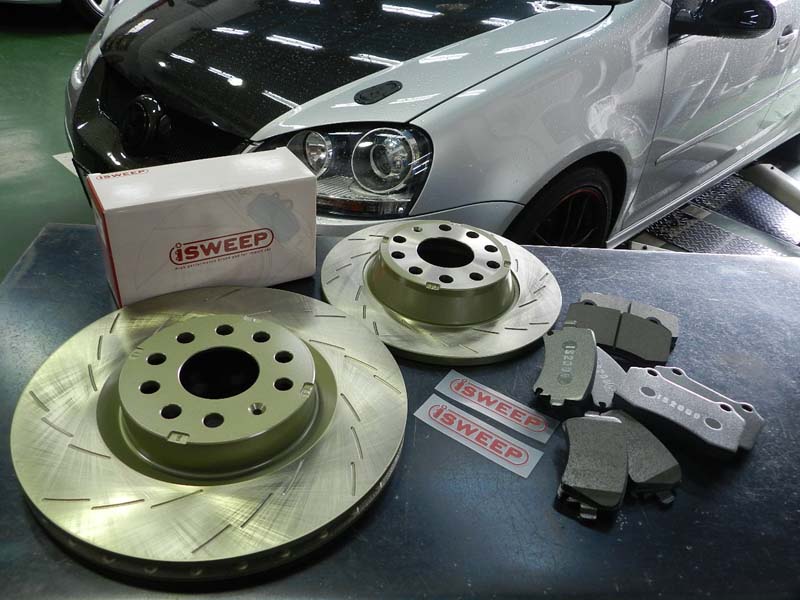 GOLF5 GTIのお客様はブレンボGT Kit専用iSWEEPローター、リアローターと前後のパットをIS2000に交換しました。iSWEEPのパットとローターの組み合わせでブレーキの感触もよりダイレクト感が増します。