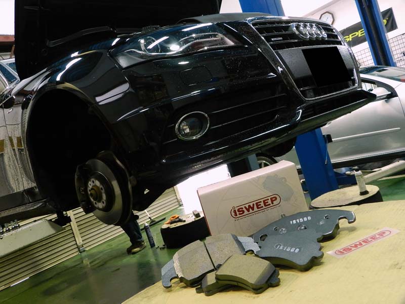 A4のお客様は前後のパットをiSWEEP IS1500に交換しました。IS1500はダストの汚れが目立たないのが特徴で、純正と比べてみれば違いは一目瞭然です。この摩材の違いがダスト汚れに大きな違いを出すのです。
