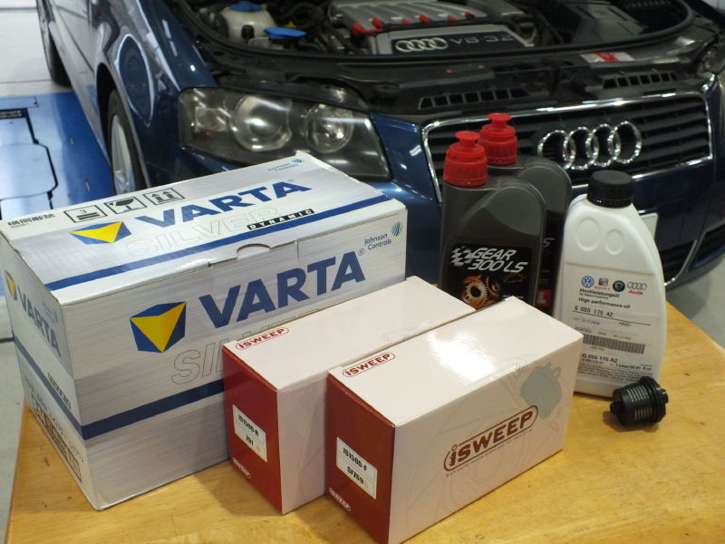 車齢が10年を過ぎましたので、消耗パーツのトータルメンテナンスを実施しました。先ずはブレーキ廻り。ブレーキパッドを「iSWEEP IS1500」に交換しました。バッテリーは純正ブランドの「VARTA F18」に交換。駆動系オイルはトランスファ、リアデフに「MOTUL GEAR300」、HALDEXオイルは「純正」を使用して交換しました。