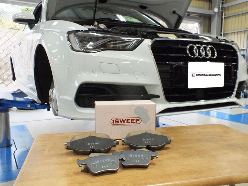 ご納車されたばかりのA3 8Vです。純正ブレーキパッドのダストの多さを事前にリサーチされていたとのことで、ホイールが汚れてしまう前にiSWEEPブレーキパッドIS1500に交換しました。ブレーキダストで汚れたホイールのまま、雨の日に走行すると、ダストがボディーに付着して黒く汚れたことはありませんか?IS1500を装着すればそんな心配は無用です。クリーンでブレーキタッチも向上するiSWEEPブレーキパッドIS1500は、カーライフをより楽しくします!適合や在庫に関しては当社までお問い合わせください。ie_staff_blog at 22:00│