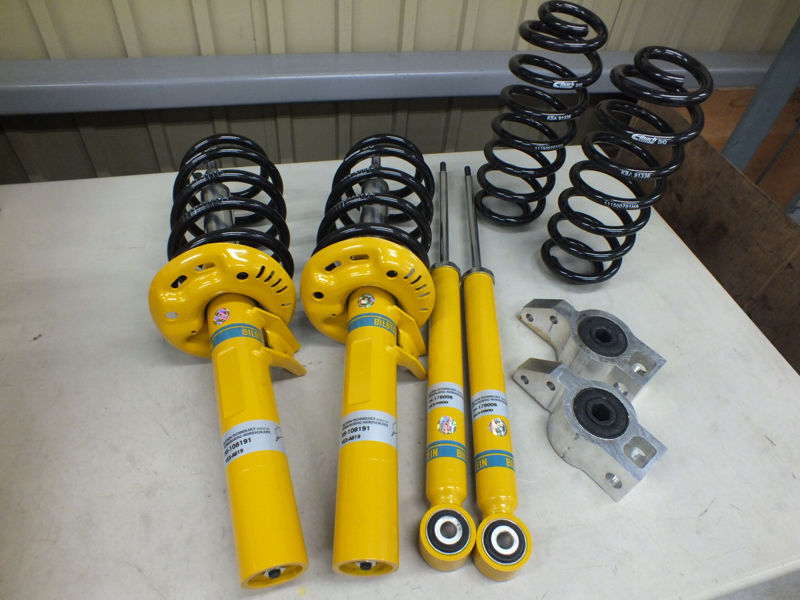 A3 8P Sportbackのサスペンションリフレッシュを行いました。車種ごとに設定されたEibach PRO-KITスプリングとB8ショートストロークダンパーを組合わせたB12 PRO-KITの取付を中心に、アッパーマウントとバンプラバーを一新。亀裂が見られたフロントコントロールアームのリア側ブッシュは、S3純正の中実タイプにアップグレードしました。