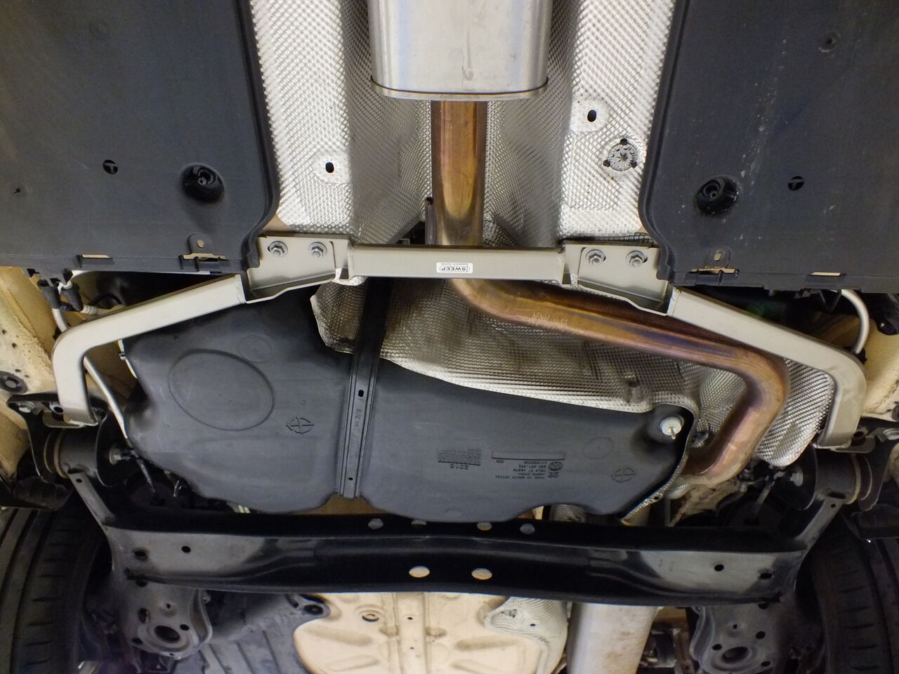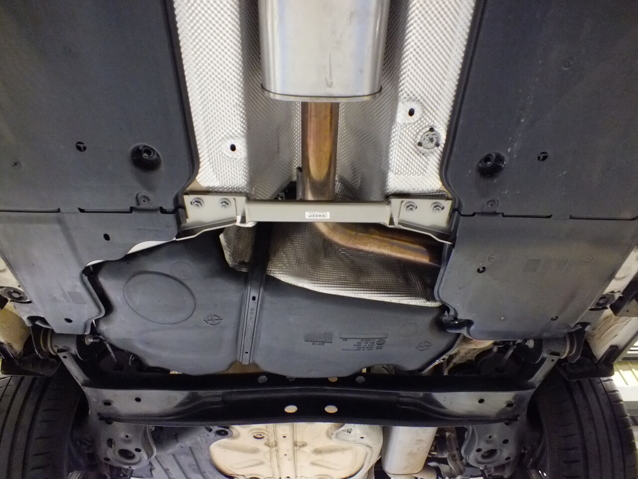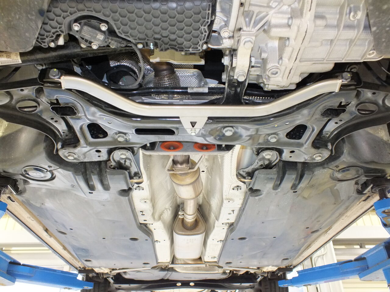 最近はPOLOの人気が高まり、昨年より問い合わせが非常に多くなりました。GTIは出力も上がり、かつ軽量。しかし従来同様シャーシ剛性の低さが相まって、軽快な走りを難しくさせていました。シャーシの剛性を飛躍的に高めることでそのクイックなレスポンスを楽しむ方が急増中です!今回はそのシャーシ剛性を高めるiSWEEP製のフロントロアアームブレース、センターフロアブレース+リアエクステンションを取付させて頂きました。