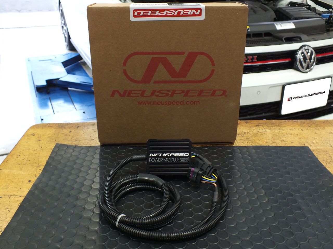 VW POLO(AW)GTIにNEUSPEED パワーモジュールを装着しました。EA888 2.0TSIを搭載し前モデルの6Cより排気量が上がり出力も向上した現行モデルのPOLO GTIですが、iSWEEP Power Braceでボディ補強を施して車両をよりコントロールできるようになったら、もっと高い出力でも快適に操作できるようになります。そんな時はNEUSPEED POWER MODULEはいかがでしょうか!車両に不具合はおきず、ディーラーの出入りにも支障なく、標準出力200PSは235PSへと向上します。いい事尽くめです!~~使用パーツ~~