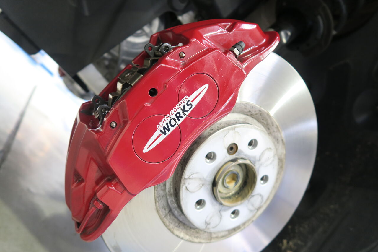 F60 JCW LCIのブレーキパッド交換です。使用したのは「iSWEEP IS1500」です。多くのMINIオーナー様がお悩みのブレーキダスト汚れを低減します。もちろん純正同等以上の制動力を発揮し、F60の大柄な車体もしっかりと制動します! 併せてMOTUL エンジンオイル 300V クロノ 10W40を使用してエンジンオイル交換も行わせていただきました。