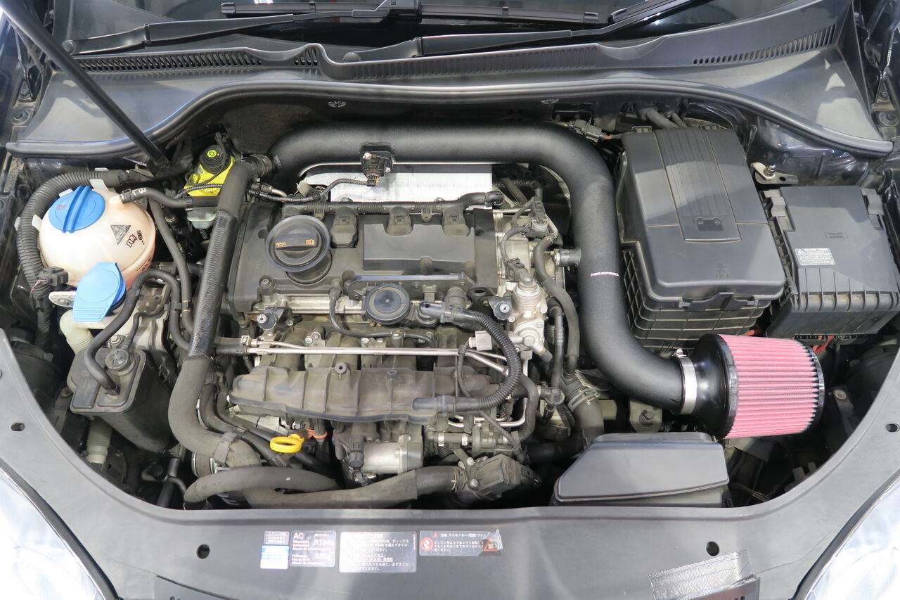 GOLF5 GTI PIRELLIのエンジンカバー兼用の純正エアクリーナーボックスをシンプルかつ高性能なNEUSPEED P-Flo Kitに交換しました!これによりエンジンカバーはなくなりますがプラグ交換などのメンテンナンス性は格段に良くなります。更に吸気音、ブローオフの音が室内にも聞こえるようになりますのでアグレッシブな走りをより楽しませてくれること間違いなしです!