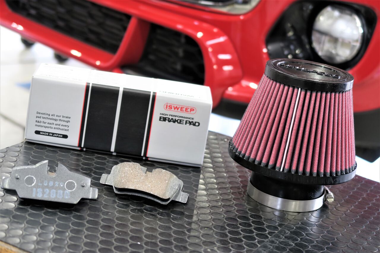 F55 Cooper Sのブレーキパッド交換とNM Hi-Flow Intake Kitのフィルター交換です。iSWEEPブレーキパッド「IS2000」はドライバーのイメージ通りの自然な減速を実現してストレスフリーなドライビングをお楽しみいただけます。エアフィルターは大気中の塵などを一定量以上吸着すると目詰まりを起こして吸入効率の低下を招くため定期的なメンテナンスが必要です。洗浄によるメンテナンスは乾燥まで1日以上の時間を要するためフィルター単体の交換によるメンテナンスをオススメしています。