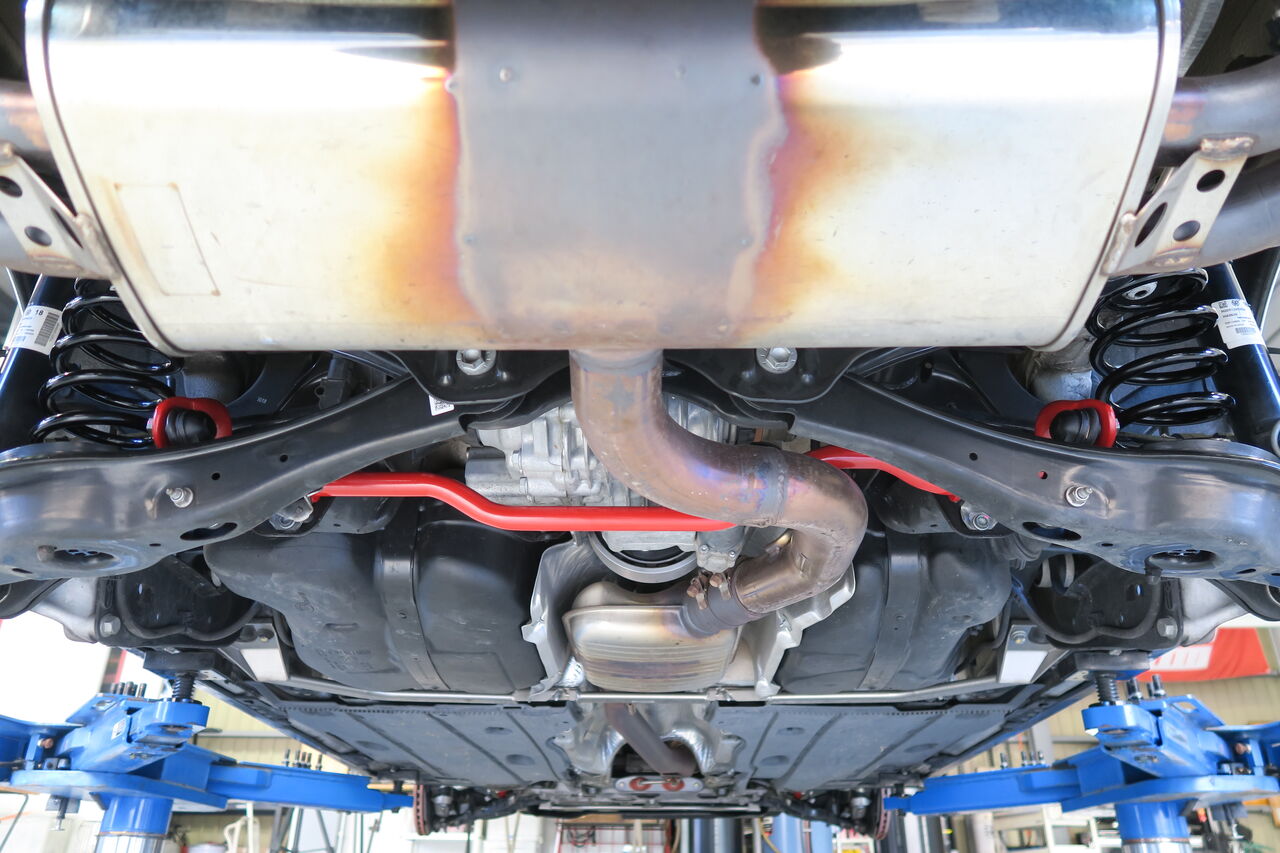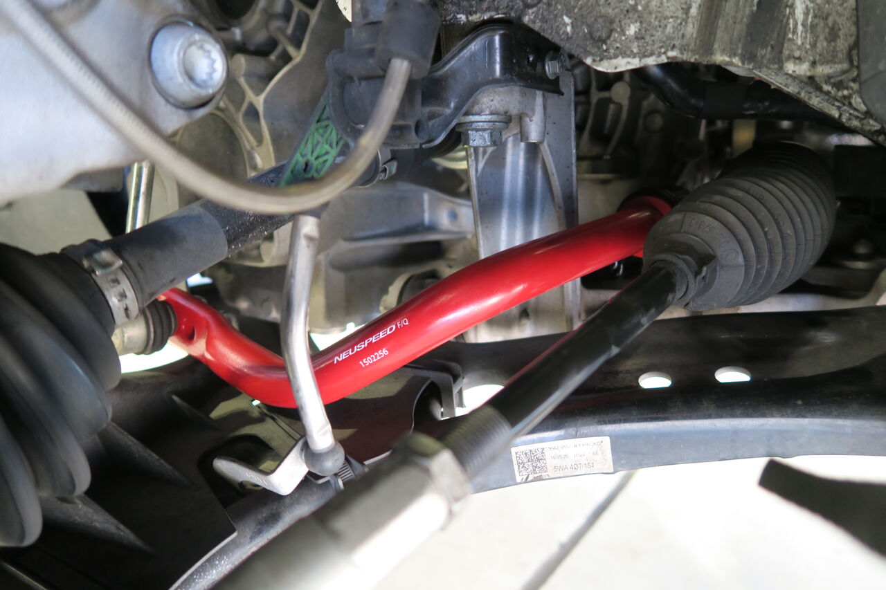 GOLF7.5 Rの足回りチューニング&フロア補強でご入庫いただきました。今回装着させていただいた「iSWEEP Upgrade Spring」は日常の走行に支障を与えない若干のローダウンと合わせて純正以上の路面への追従性やロール特性を実現し、走行性能を一段と高めるチューニングサスペンションスプリングです。電子制御ダンパーが搭載される車両においてはコンフォート~スポーツの特性がはっきり鮮明になりますのでステージに合わせたセッティングを今まで以上にお楽しみいただけます。こちらの車両のオーナー様はサーキットでの走行も楽しまれており、併せて「NEUSPEED Sway Bar」を前後に装着してロール量を抑制し、さらに新しくアルミサブフレーム専用に新設計した「iSWEEP Front Lower Arm Power Brace」の装着による正確なハンドリングでスポーティーな仕様に仕上がりました。