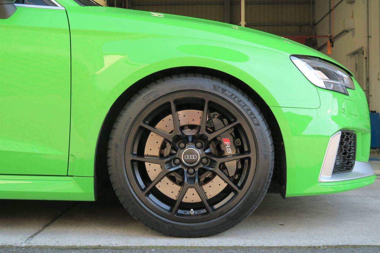 NEUSPEED RSe10 18x8.5 +45 Satin Black + MICHELIN PS4S 235/40R18の組み合わせとNEUSPEED スポーツスプリングでローダウンを行いました。車高のダウン幅は純正比で前後約15ミリとなりました。程よくローダウンすることで車全体が引き締まり大きく印象が変わります!今回交換したNEUSPEED RSe10はRS3 Sportback 8 Potキャリパーでもしっかりクリアランスを確保できるビックキャリパー対応ホイールです。センターキャップはアダプター無しでAUDI純正センターキャップを使用することも出来ますので純正のようなイメージに仕立てることも可能です。今回前後のエンブレムもシルバーからブラックタイプに交換させていただきましたのでサテンブラックのホイールとのマッチングも良くスタイリッシュに仕上がりました!ie_staff_blog at 18:00│