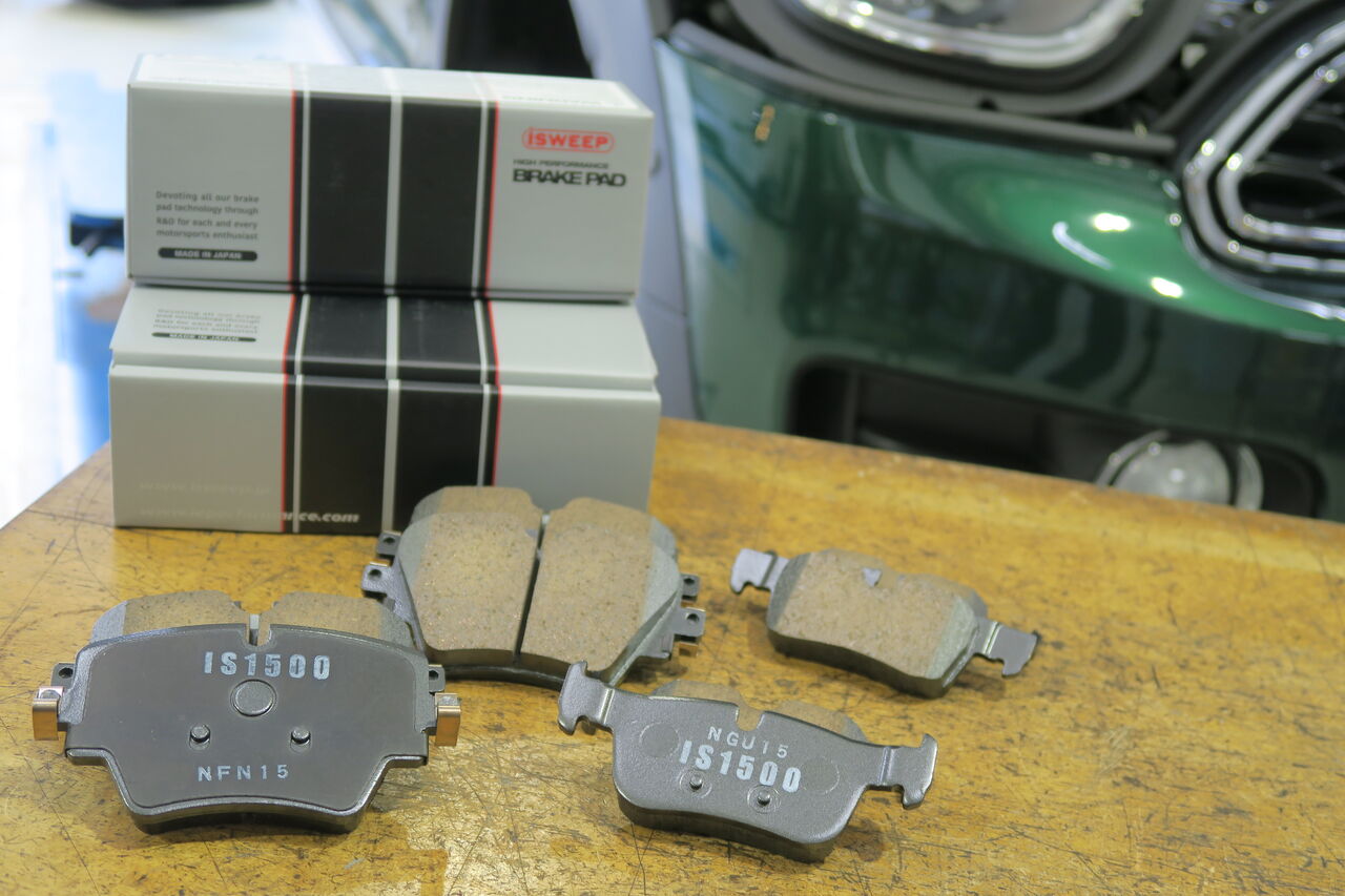 F60 Cooper SDのブレーキパッド交換でご来店いただきました。ブレーキダスト汚れにお困りとのことで「iSWEEP IS1500」に交換させて頂きました。IS1500は低ダストと踏力に応じた制動力調整の扱いやすさが特徴です!純正ブレーキパッドの真っ黒なダスト汚れやカックンブレーキにお悩みの方にオススメです!
