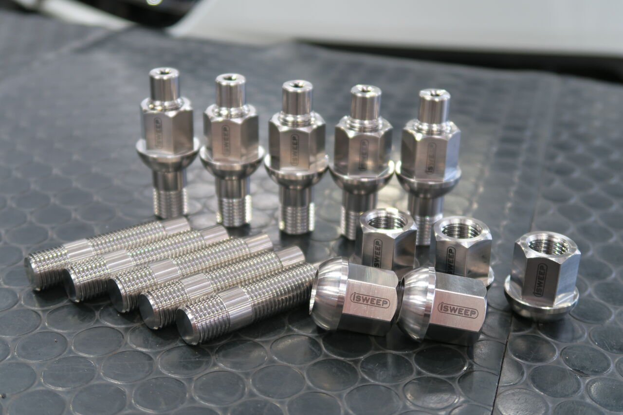 ARTEONに「iSWEEP Gr.5 FORGED TITANIUM WHEEL BOLT」のスタッドボルトタイプを装着させていただきました。通常のボルトタイプから交換することで軽量化はもちろんですがホイールの脱着が楽になりますのでご自身でホイールの脱着をされる方やサーキットユーザー様にオススメです!スタッドボルトはスペーサーが使用できるように長さを60ミリから80ミリまで5種類ラインナップしています。ナット形状は19HEXのみとなりますが、ボルトタイプ同様に13Rの球面と60°テーパー形状がありカラーも3種類ございます。お気軽にお問い合わせください!ie_staff_blog at 16:00│