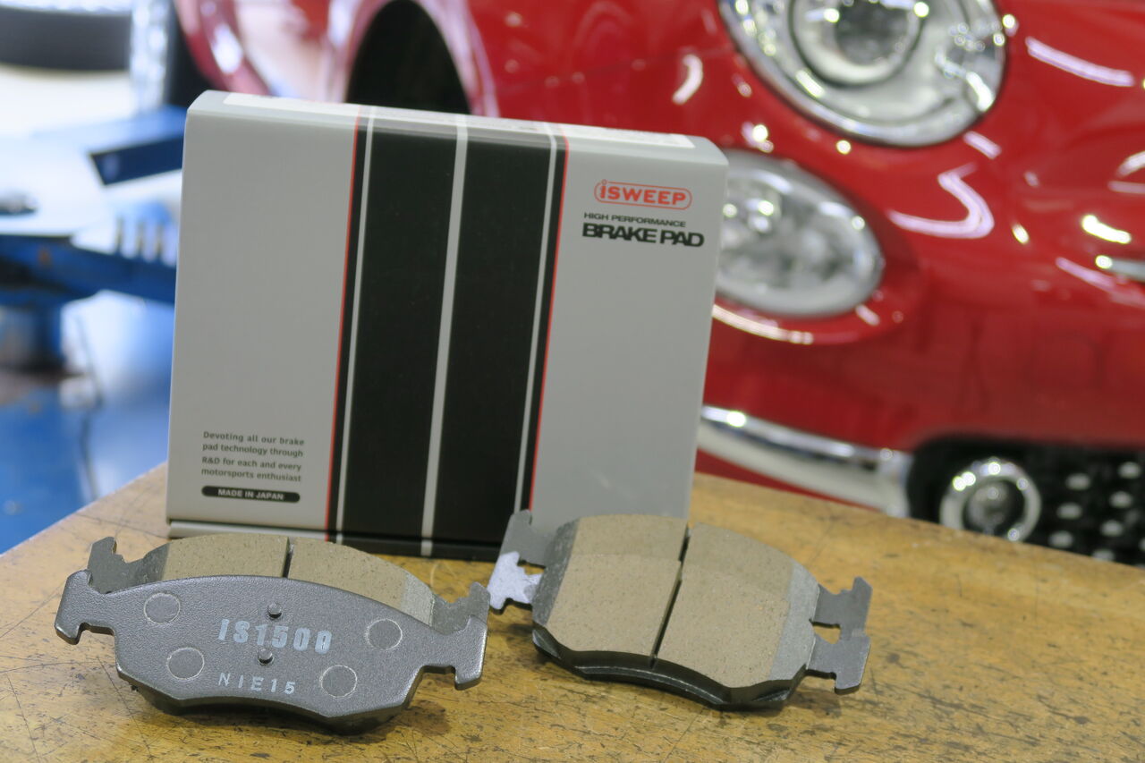 FIAT 500のブレーキパッド交換でご来店いただきました。このお車のほかにMINI F56に乗られており、そちらに装着していただいているiSWEEP IS1500をFIAT用に製作させていただきました。IS1500は低ダストタイプでありながら制動力を犠牲にすることなく、踏力に合わせた制動特性で運転が楽になります。新車のキレイな状態を保つためにも早めの交換がオススメです!
