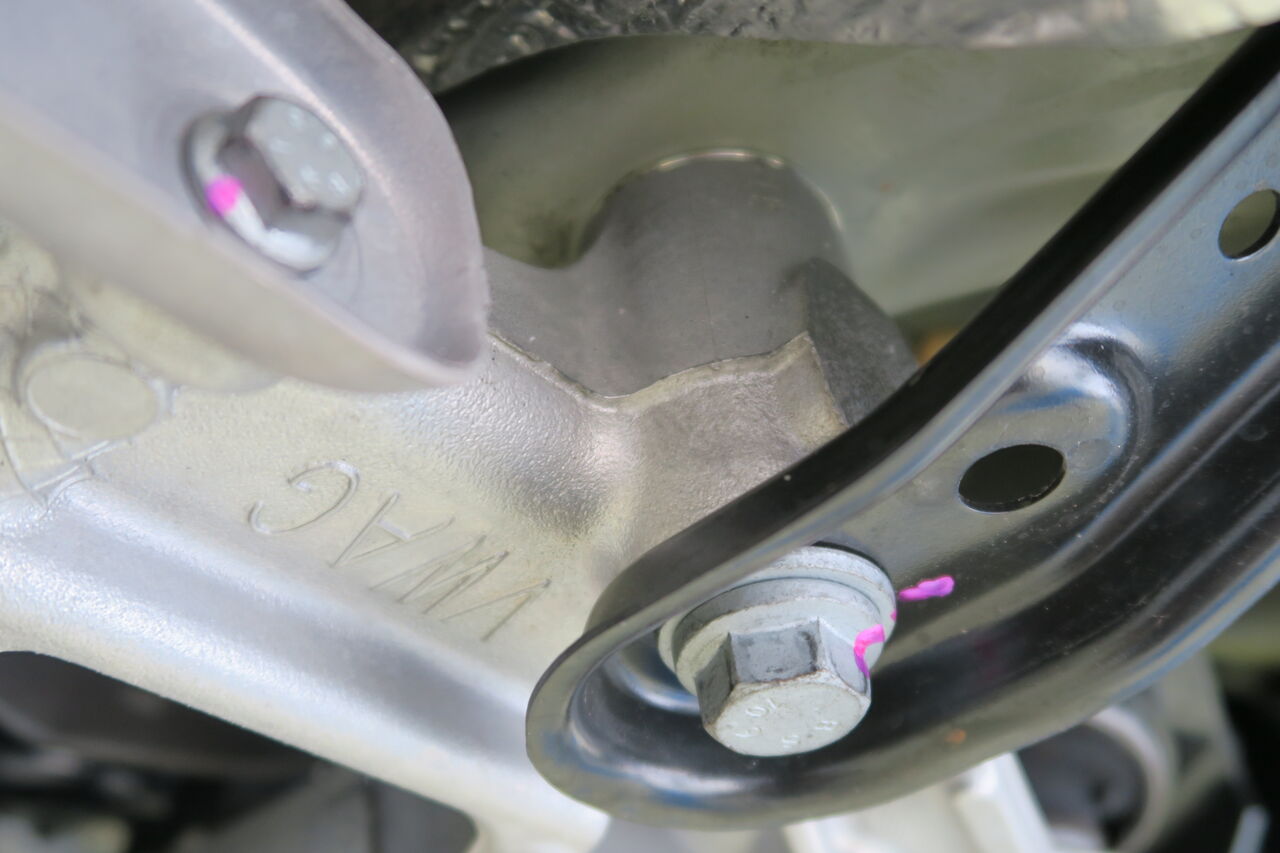 T-Roc Rのシャシチューニングでご入庫いただきました。これまでリジカラの設定がない車両ですので、サブフレームとボディの締結部分に適合するカラーを検証しながらの装着を行いました。リジカラはボルト穴にぴったりと収まるカラーを挿入することで隙間を埋め、また有効な接触面を増大することで台車となるサブフレームと荷台となるボディの一体感を高めます。同時にフロント左右のサスペンションロアアームの支持部に「iSWEEP Front Lower Arm Power Brace」を装着させていただき、走行中のフレームの変形やアライメントの変化を抑制した正確で高レスポンスの安定したハンドリングを実現しています。ie_staff_blog at 21:00│