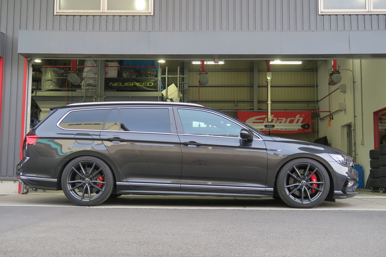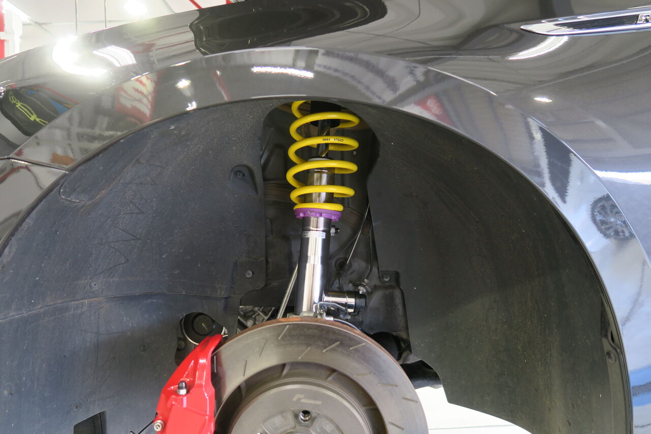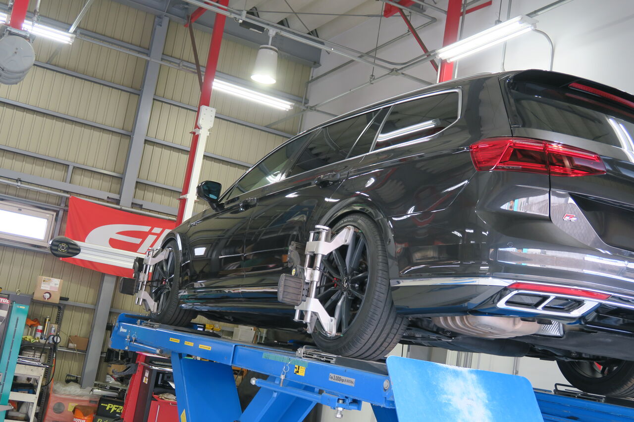 PASSAT(B8.5)VariantにKW車高調整式サスペンションキット「DDC PLUG & PLAY」の取り付けでお預かりしました。純正のDCC機能を生かすことで減衰力調整機能を持ち合わせているため、純正と同様に室内のスイッチでモード切替が可能です!元々Eibach PRO-KITを装着されてローダウンされていましたが、今回はフロントの車高は変更せずリアをフロントに合わせたいとのことで、元車高からのダウン幅はフロント:0mm、リア:-5mmとなりました。車高や前後バランスをこだわるには車高調整式サスペンションが必須になります!最後に4輪アライメント調整を行い完成です。