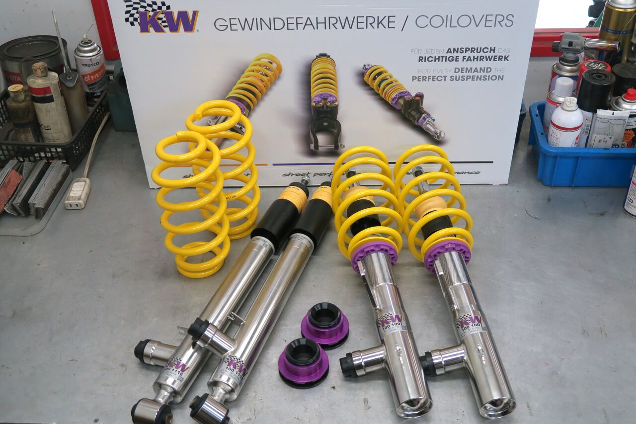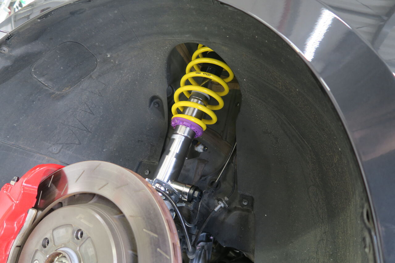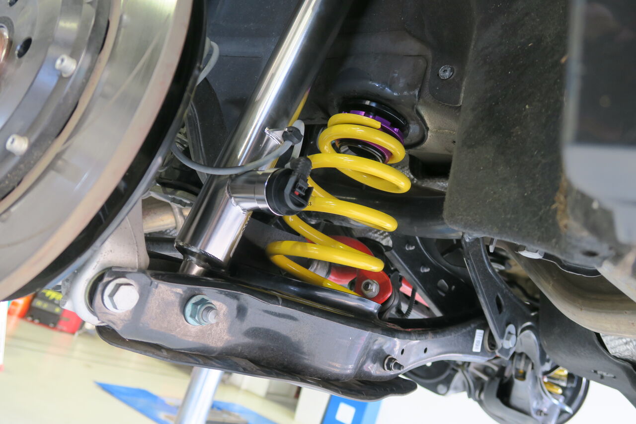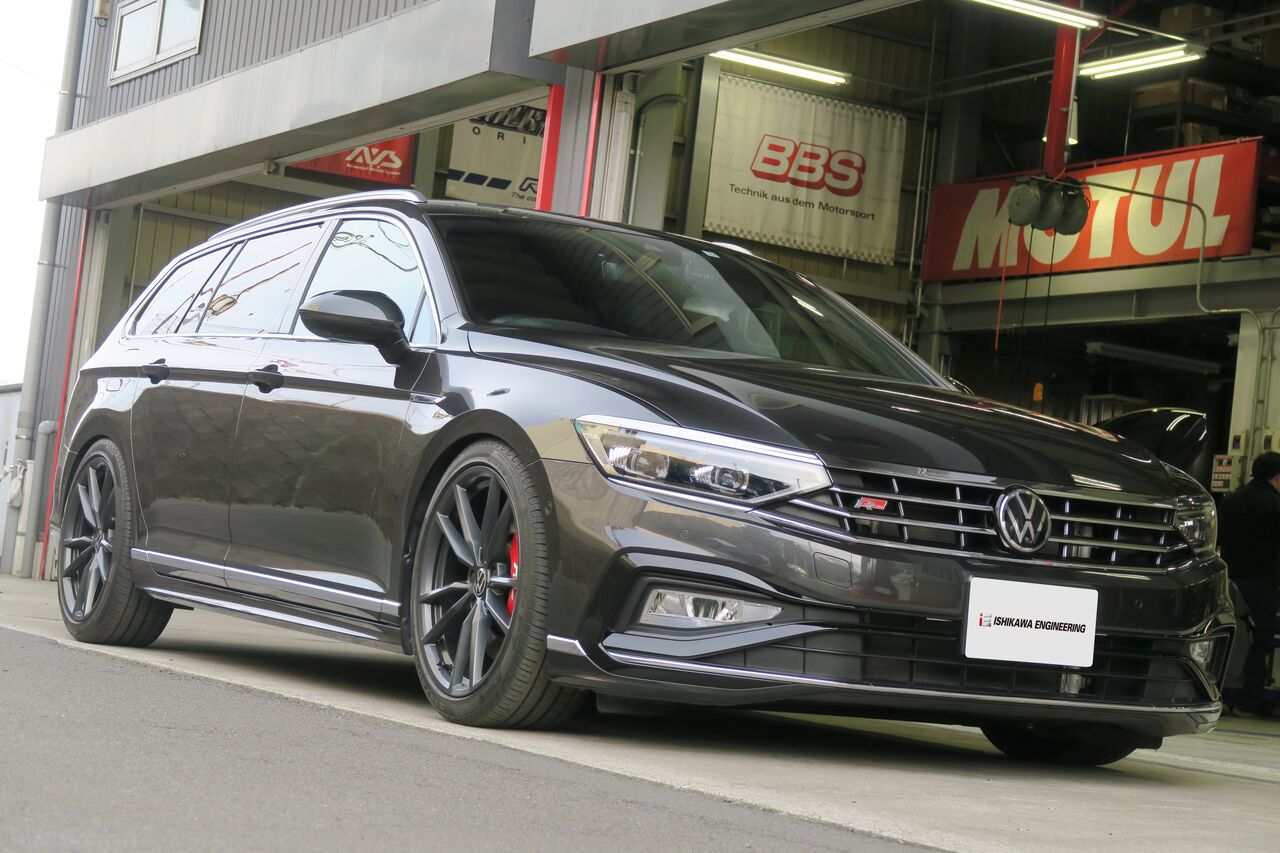 PASSAT(B8.5)VariantにKW車高調整式サスペンションキット「DDC PLUG & PLAY」の取り付けでお預かりしました。純正のDCC機能を生かすことで減衰力調整機能を持ち合わせているため、純正と同様に室内のスイッチでモード切替が可能です!元々Eibach PRO-KITを装着されてローダウンされていましたが、今回はフロントの車高は変更せずリアをフロントに合わせたいとのことで、元車高からのダウン幅はフロント:0mm、リア:-5mmとなりました。車高や前後バランスをこだわるには車高調整式サスペンションが必須になります!最後に4輪アライメント調整を行い完成です。