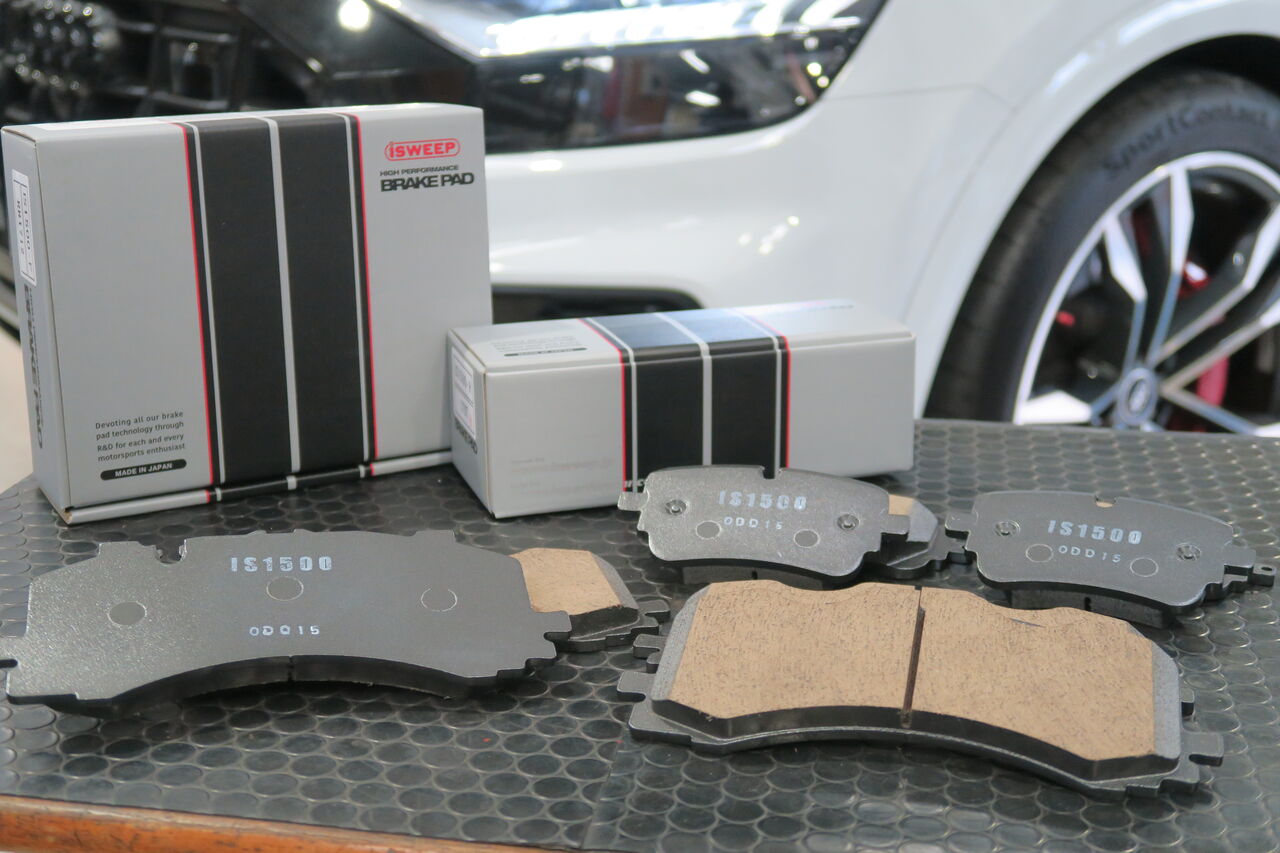 SQ8 (F1)のブレーキパッド交換でご来店いただきました。ブレーキダストにより大切なホイールが汚れるのを防ぐために低ダストタイプの「iSWEEP IS1500」に交換しました。IS1500は低ダスト性能に優れブレーキダストによるホイール汚れを軽減し、市街地走行条件では純正比+αの効力でSQ8のような重量級の車体でも安心してお使いいただけます。踏力に応じた制動特性も特徴で純正のカックンブレーキを軽減できます!ie_staff_blog at 12:00│