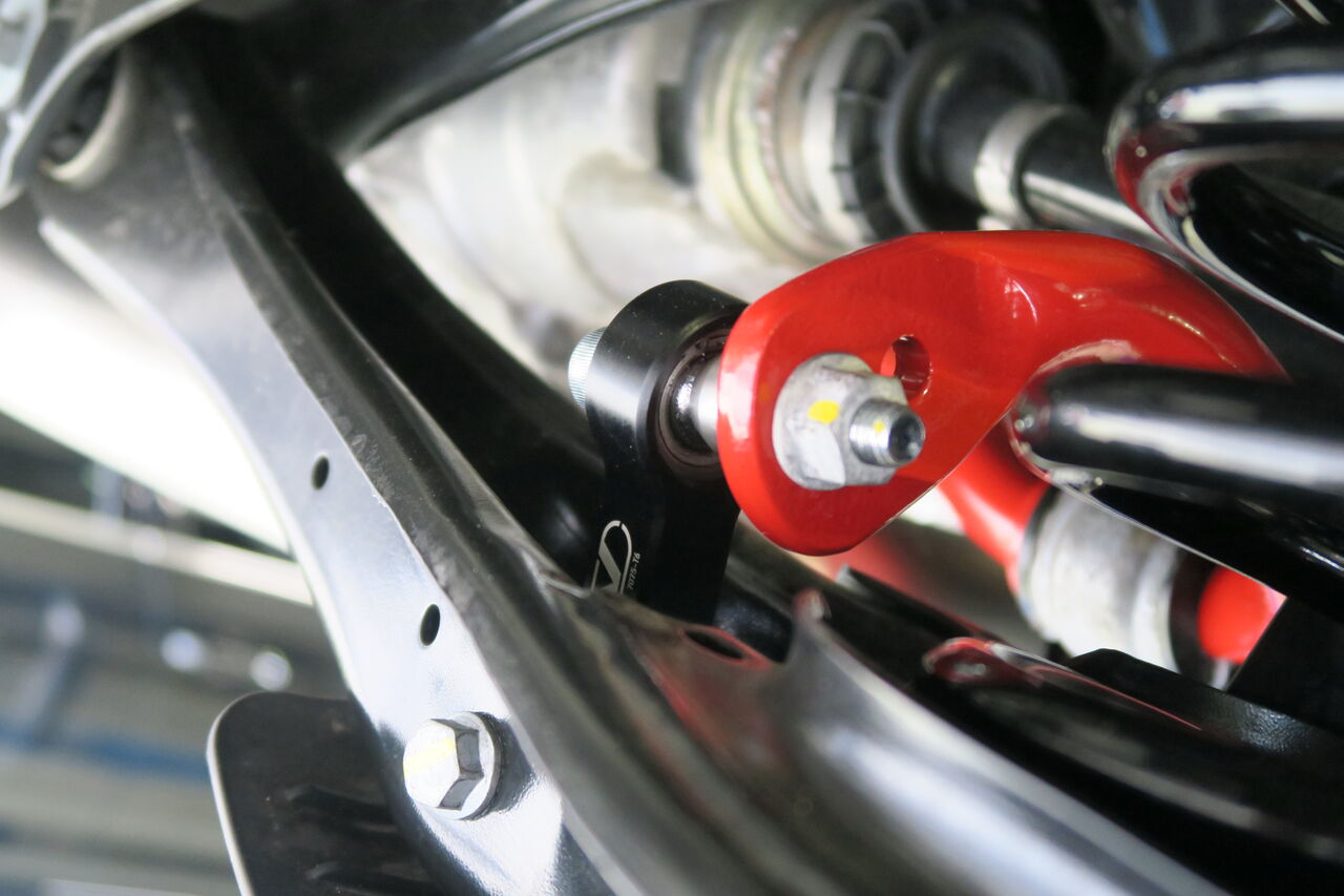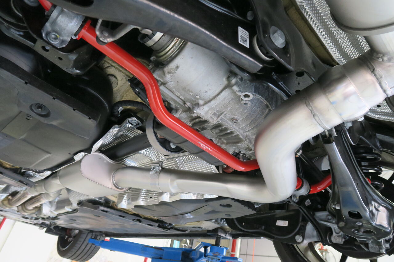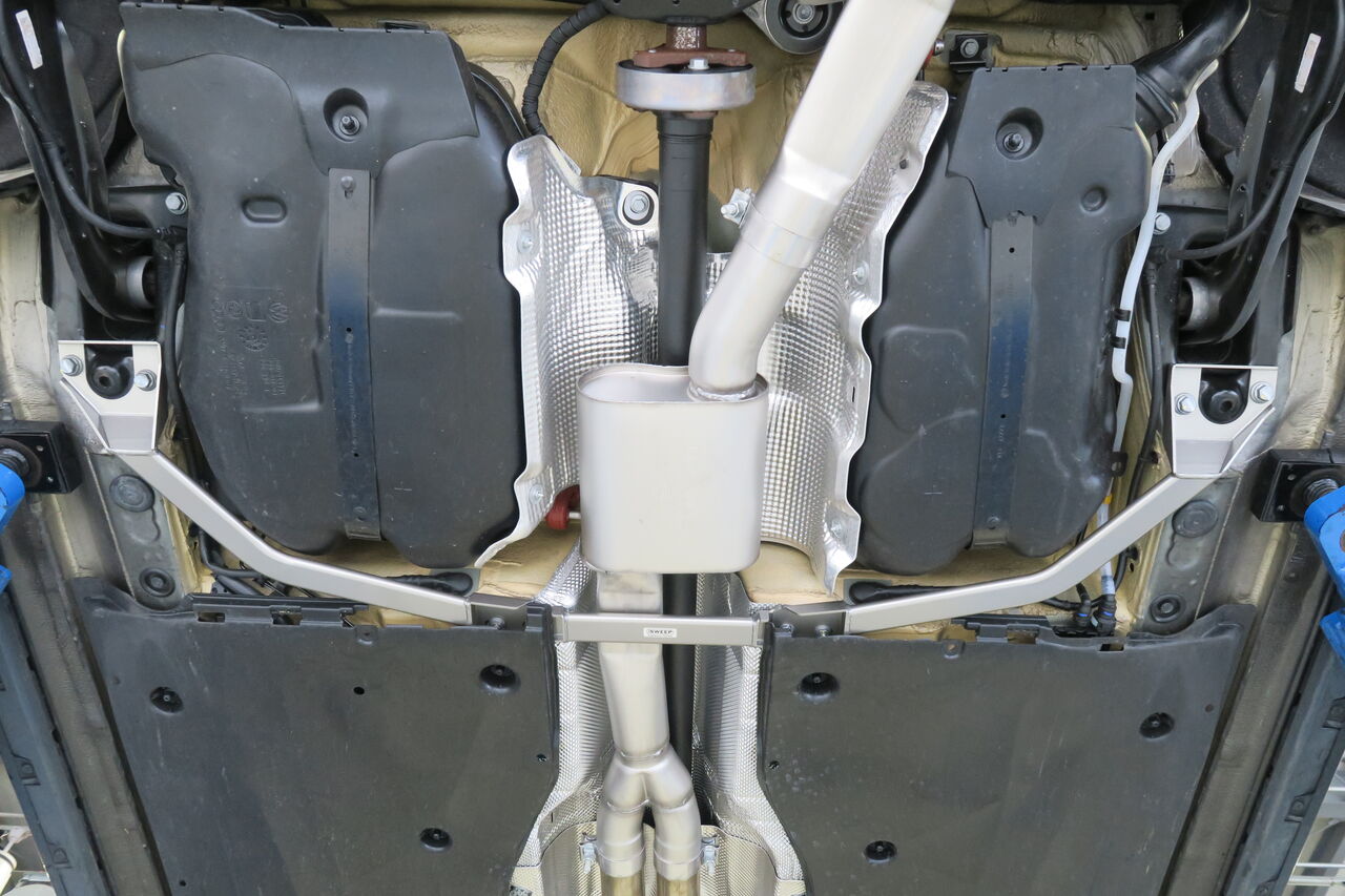 ブレーキパッドも「iSWEEP IS1500」に交換させていただきましたのでブレーキダストでホイールが真っ黒に汚れることを防ぐことで美観を保ちます。ボディ補強も行い「iSWEEP センターフロアパワーブレースリア3ピース」の取り付けとリアにもiSWEEPサブフレームリジットカラーを装着しました。