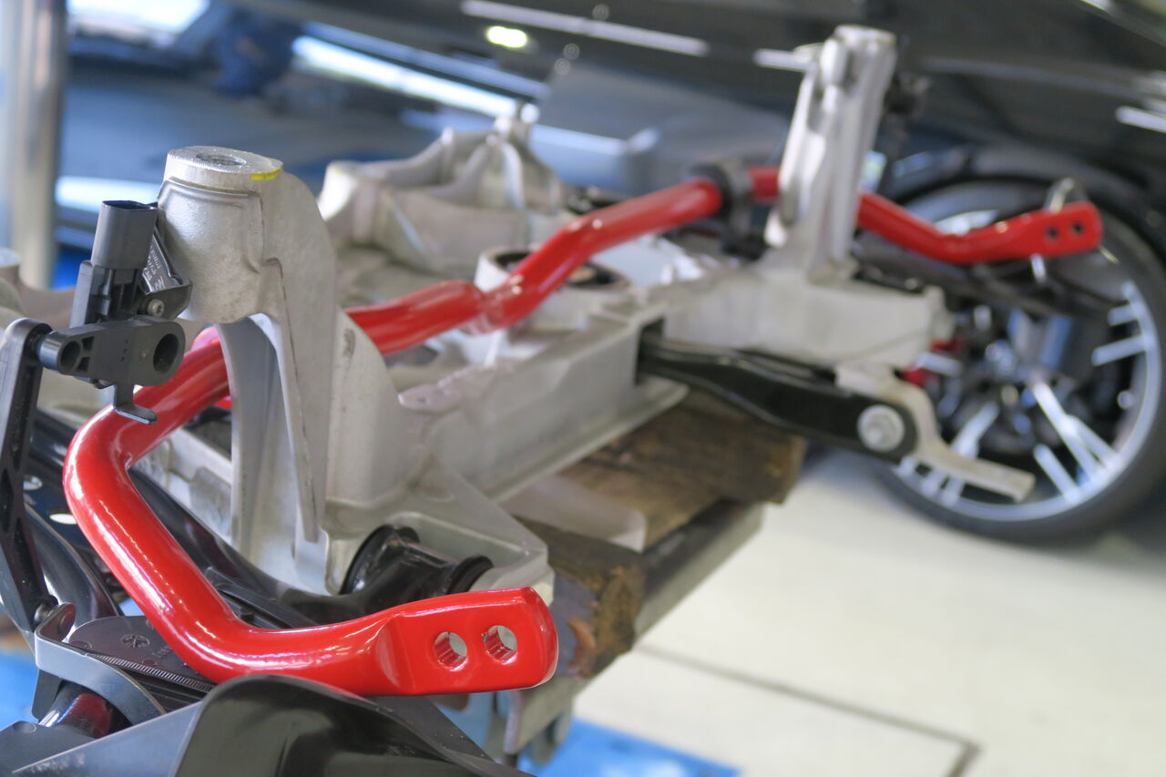 RS3 8YにNEUSPEED Sway-Barを前後に装着させていただきました。不快なふらつきやロールやバタツキを大幅に減少させ、コーナリング時や高速走行時の走行安定性を格段に向上させます。また、サスペンションを強化している場合などサスペンションのストローク変化が少ない場合でも、強化スタビライザーの装着によりしっかりとスタビライザーの効果を発揮させることができます。 NEUSPEED Sway-Bar強化リンクも前後に装着しました。スタビライザーはサスペンションアームやショックアブソーバーに左右のストローク差が生じることでねじれる構造になっていますので、リンクを強化することで早期にスタビライザーを機能させることができます!