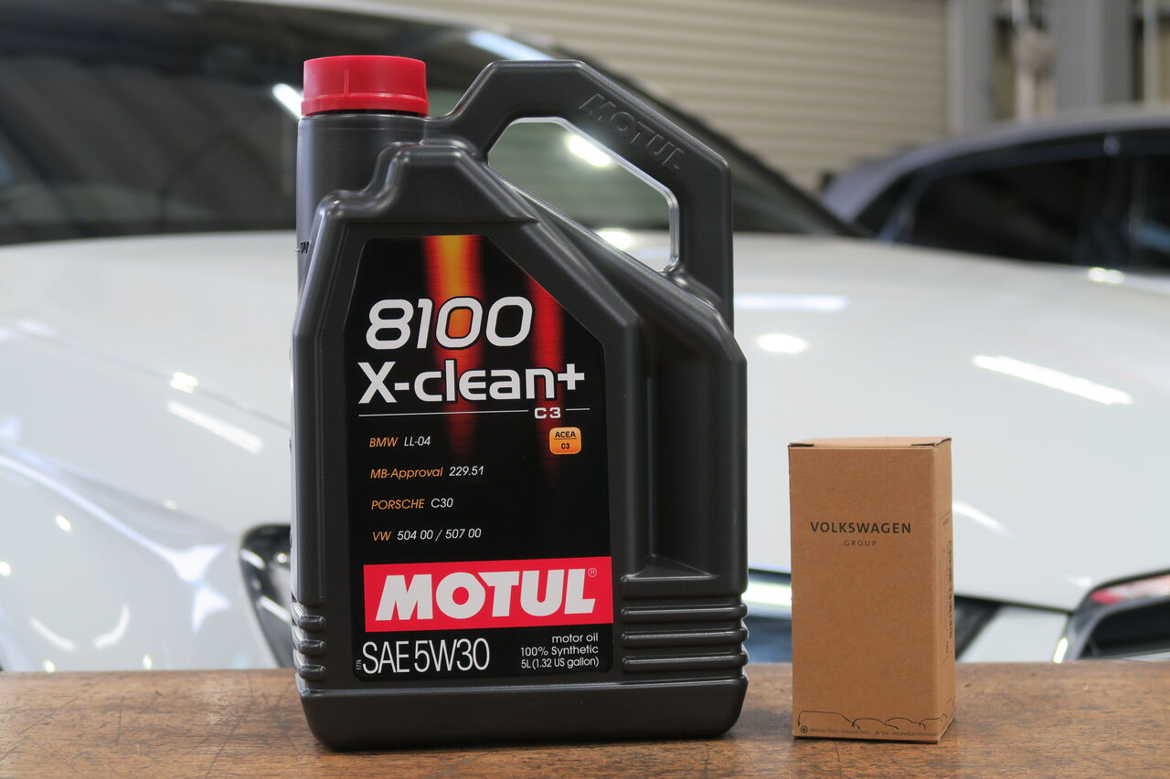S3 (8V)のエンジンオイル交換でご入庫いただきました。オイルにはスムーズな回転フィールと強力な保護性能を両立する「MOTUL 8100 X-Clean+ 5W-30」を使用させていただきました。エンジンオイルの交換は使用環境などの条件で異なりますが、3000~5000㎞毎を目安にこまめな交換がおすすめです。