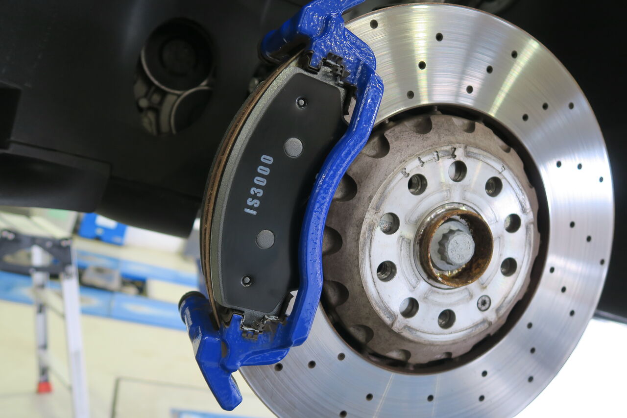 GOLF8 Rのブレーキパッド交換でご来店いただきました。ブレーキパッドはサーキット走行に合わせて「iSWEEP IS3000」をお選びいただきました。IS3000はロースチール材を採用したブレーキパッドで、サーキット走行や峠の連続走行などブレーキローターが高温の状態を維持するようなシチュエーションでその本領を発揮します。ブレーキローターの表面にカーボン被膜を形成するブレーキパッドで、使用環境や使用方法に適した走行をする方にオススメするブレーキパッドになっております!今回同時にRS3(8Y)純正ブレーキ導風板の取り付けも行いました。走行風を効率的にブレーキキャリパーとローターに当てることで過度な温度上昇を抑制し、フェードやベーパーロックなどのトラブルリスクやブレーキパッドの異常摩耗を軽減する効果を発揮します!