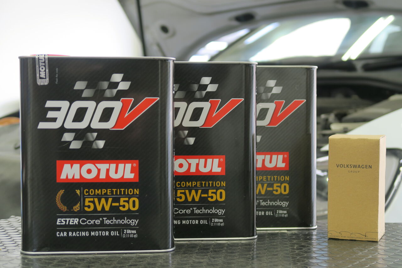 S3(8V) Sedanのエンジンオイル交換でご来店いただきました。今回使用させていただいた「MOTUL 300V COMPETITION 5W-50」は低温での流動性の高さと耐熱性を併せ持つワイドレンジオイルです。冷間時のオイル抵抗によるロスを減らしながら温間時には熱による粘度低下が少なく最大限の保護性能を発揮します!