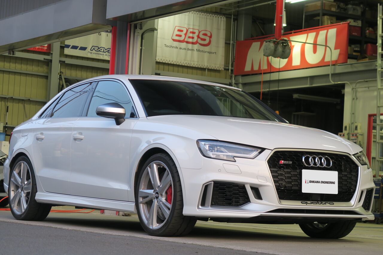 RS3(8V)のブレーキパッド交換でご来店いただきました。サーキット走行を楽しまれているこちらのお車には「iSWEEP IS3000」をお選びいただきました。IS3000はロースチール材を採用したブレーキパッドでサーキット走行や峠の連続走行などブレーキローターが高温の状態を維持するようなシチュエーションで本領を発揮します。今回合わせてブレーキフルードを高温となるブレーキ使用条件下でも安定した性能を維持する「iSWEEP Racing BF」への交換と走行風を効率的にブレーキキャリパーとローターに当てることで過度な温度上昇を抑制することが出来るRS3(8Y)純正導風板を取り付けさせていただきました!ie_staff_blog at 13:00│