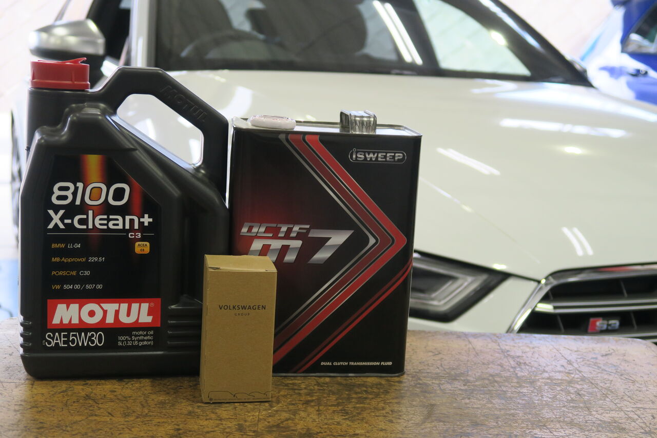 S3(8V) Sportbackの車検整備でお預かりしました。今回の整備ではエンジンオイル、DSGオイル、ブレーキオイルなど定期交換油種の交換を中心に行いました。DSGオイルには「iSWEEP DCTF m7」を使用しました。街乗りからサーキット走行まで幅広いシーンで使用していただけます。純正のDSGオイルよりもギアの保護性能に優れ、シフトのつながりと加速力も良くなります!消耗品を定期的に交換することで車のパフォーマンスを維持させるとともにトラブルを未然に防ぐことができますので気になる方はお気軽にお問い合わせください。