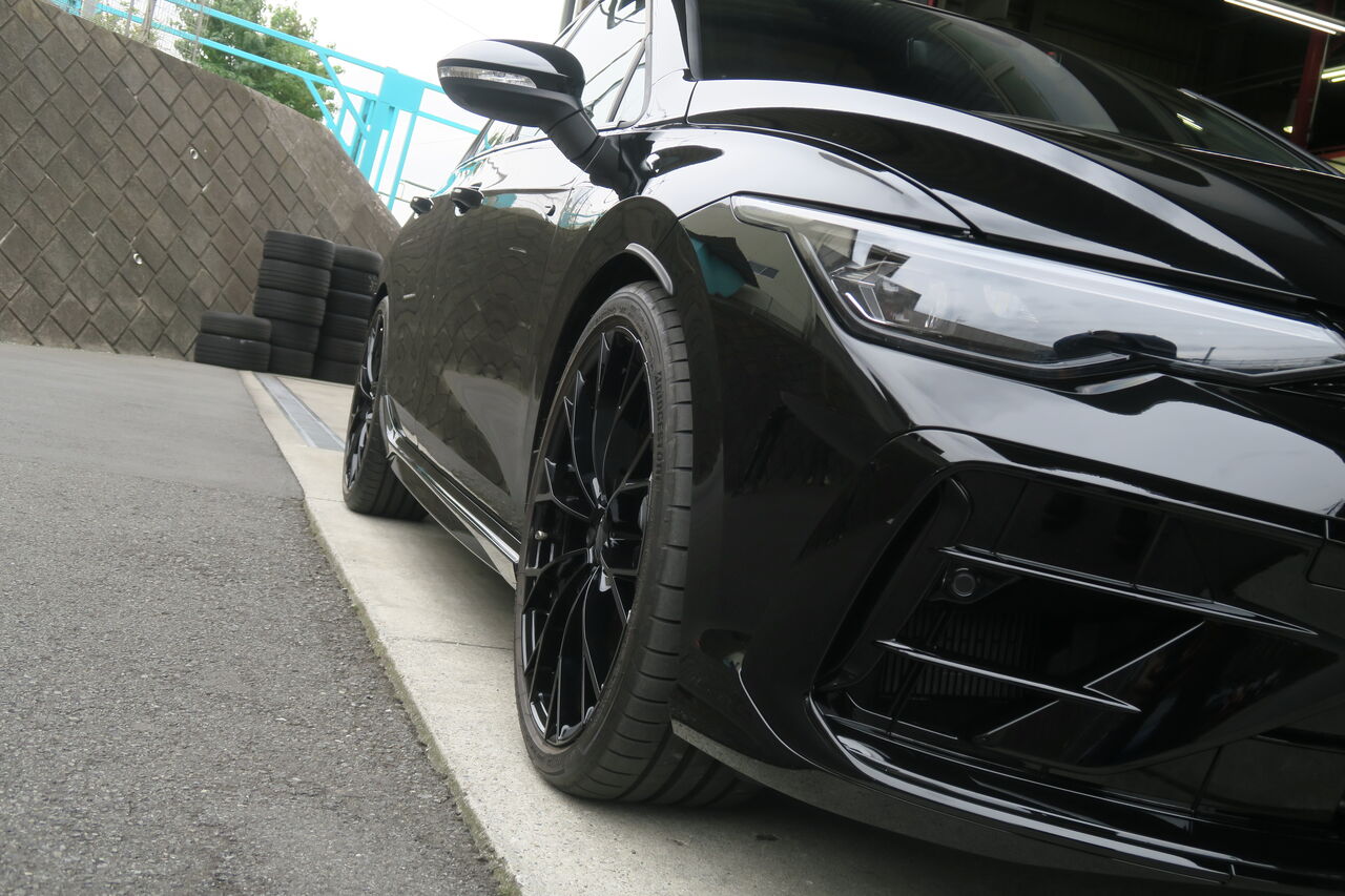 GOLF8.5 Rのローダウンとリジカラの取り付けでご来店いただきました。ローダウンには「iSWEEP Upgrade Spring」をお選びいただきました。このアップグレードスプリングは、入力に対してリニアに反応する特性を持ち、自然でしっかりとした乗り心地になります。車両の動きを安定させ、ドライバーの操作に対して素直な応答性を発揮します。車高のダウン量は純正比フロント約5mm、リア約10mmのダウンとなりました。同時に取り付けた「iSWEEP Sub-Frame Rigid Collar」はボディとサブフレームの間にアルミ製リジットカラーを挟み両者間の接合部の接触面積を増やすことで締結強度を向上させます。装着後は路面からの入力を適切にサスペンションに伝達出来るようになるので、乗り心地や走行安定性の向上に効果を発揮します!
