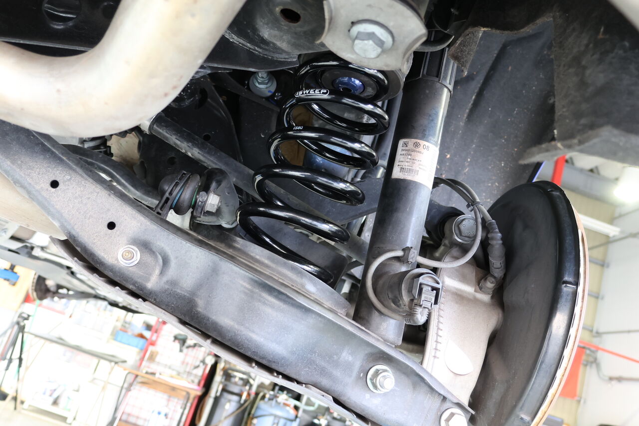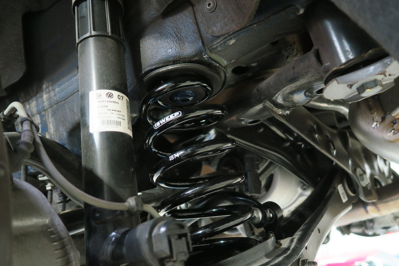 GOLF7.5 Rに「iSWEEP Suspension Competition」を装着しました。iSWEEP Suspensionはバネレートや減衰特性を使用目的やオーナー様のお好みに合わせた設定が可能なセミオーダーメイドとなっています。純正のサスペンションではフロントのキャンバーを調整することは出来ませんが"COMPETITION"のフロントアッパーマウントはピロボール式でサスペンションを取り外すことなくキャンバー調整が可能ですのでサーキット走行を楽しまれている方には特にオススメしております。今回同時にボディ補強パーツである「iSWEEP センターフロアパワーブレースリア3ピース」を装着しました。フロアを強化することで路面からの入力はシャーシの歪に逃げることなくサスペンションによって吸収され、しなやかな走行性を実現します。車体に大きな負荷のかかるスポーツ走行はもちろん、街乗りや高速道路での快適性をお求めのオーナー様にもオススメの補強アイテムです!ie_staff_blog at 15:00|Permalink│