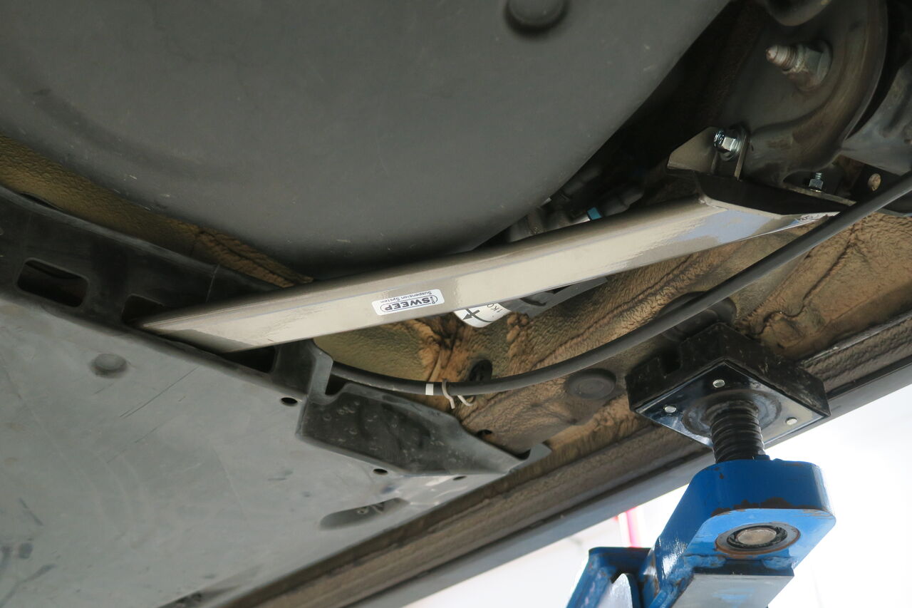 今回合わせてボディ補強パーツも装着させていただきました。iSWEEPフロントロアアームパワーブレース、センターフロアパワーブレースリア3P、リアスタビライザーを装着させていただきました。フロントロアアームパワーブレースはステアリングレスポンスとトラクション伝導率を飛躍的向上させ、センターフロアパワーブレース3Pは乗り心地とリアのバタつきを改善します。リアスタビライザーは、乗り心地を損なうことなく車体のアンチロール性を高め走行安定性、回頭性の向上を実現します。製品は中実16Φで追加装着式となります。剛性アップは乗り心地を硬くすると思われがちですが、逆にサスペンションをより機能的にすることができますのでしっかりとした乗り心地と走行安定性の向上で運転がもっと楽しくなります!
