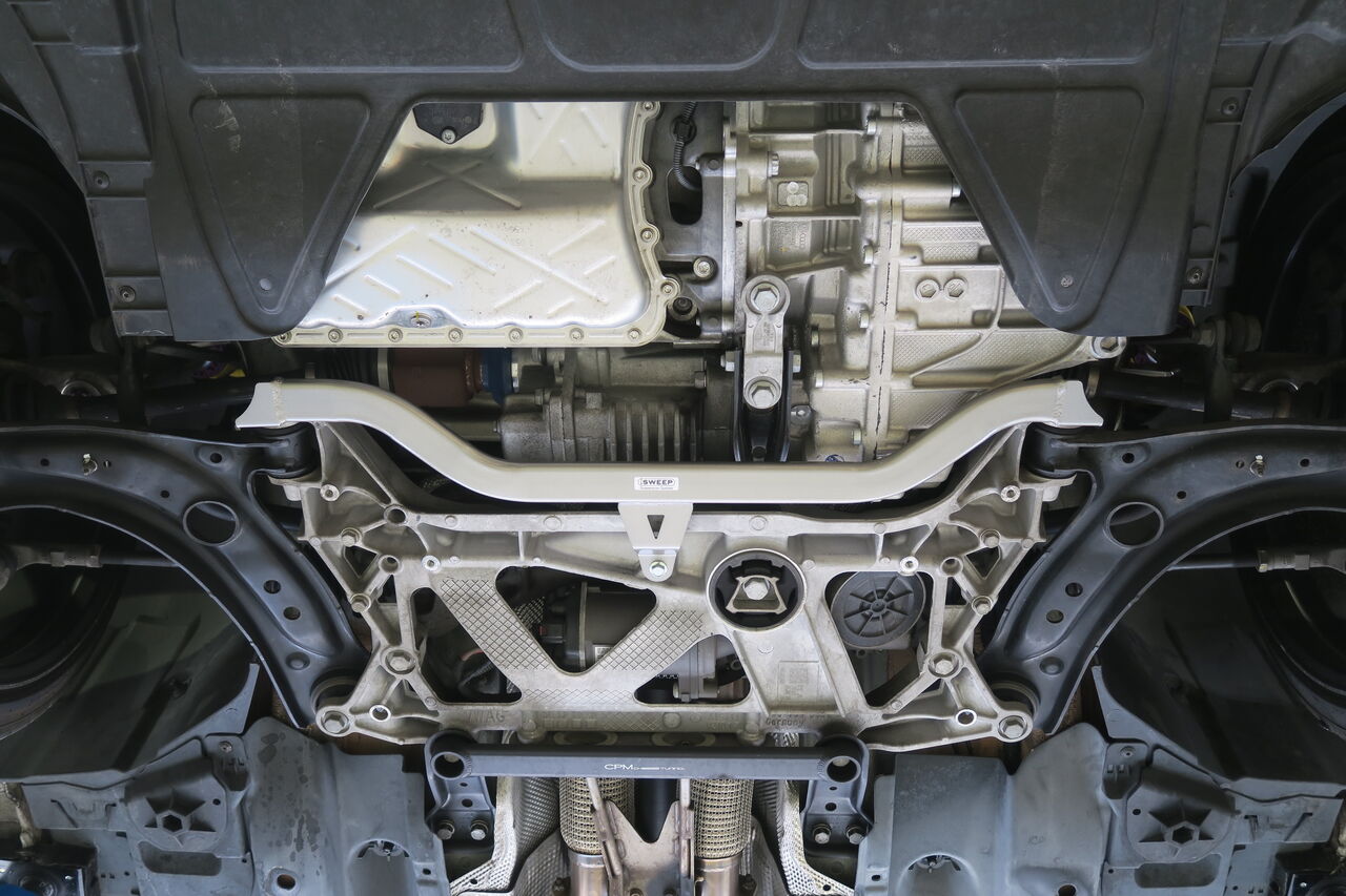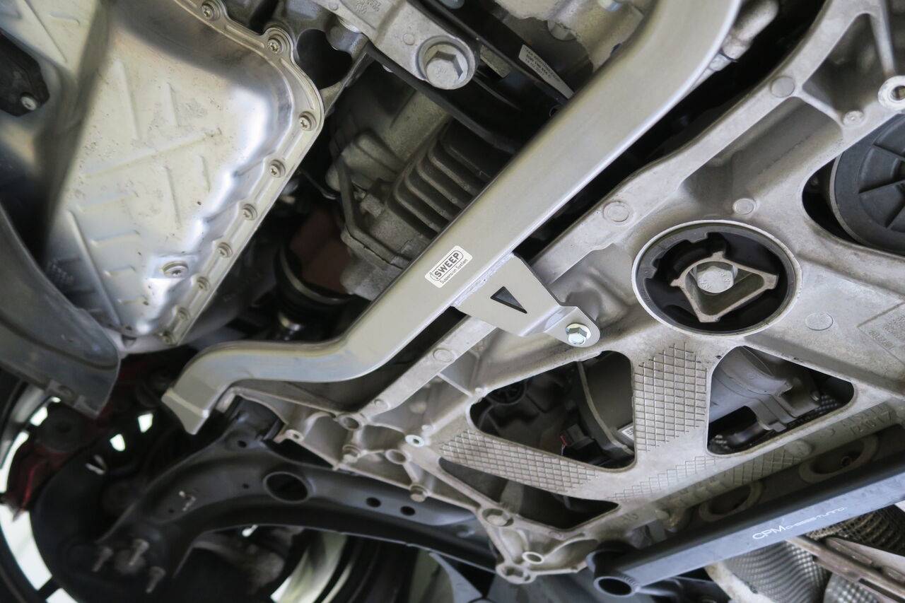 RS3(8Y)に「iSWEEP Front Lower Arm Power Brace」を装着させていただきました。左右のロアアーム接続部を支えるように補強を配置することで効果的に剛性をアップし、正確で軽快なステアリングフィールを実現します!RS3(8Y)はエンジンアンダーカバーがブレースと干渉してしまうためカットする加工が必要となりますがキレイに加工させていただきますので気になる方はお気軽にお問い合わせください。